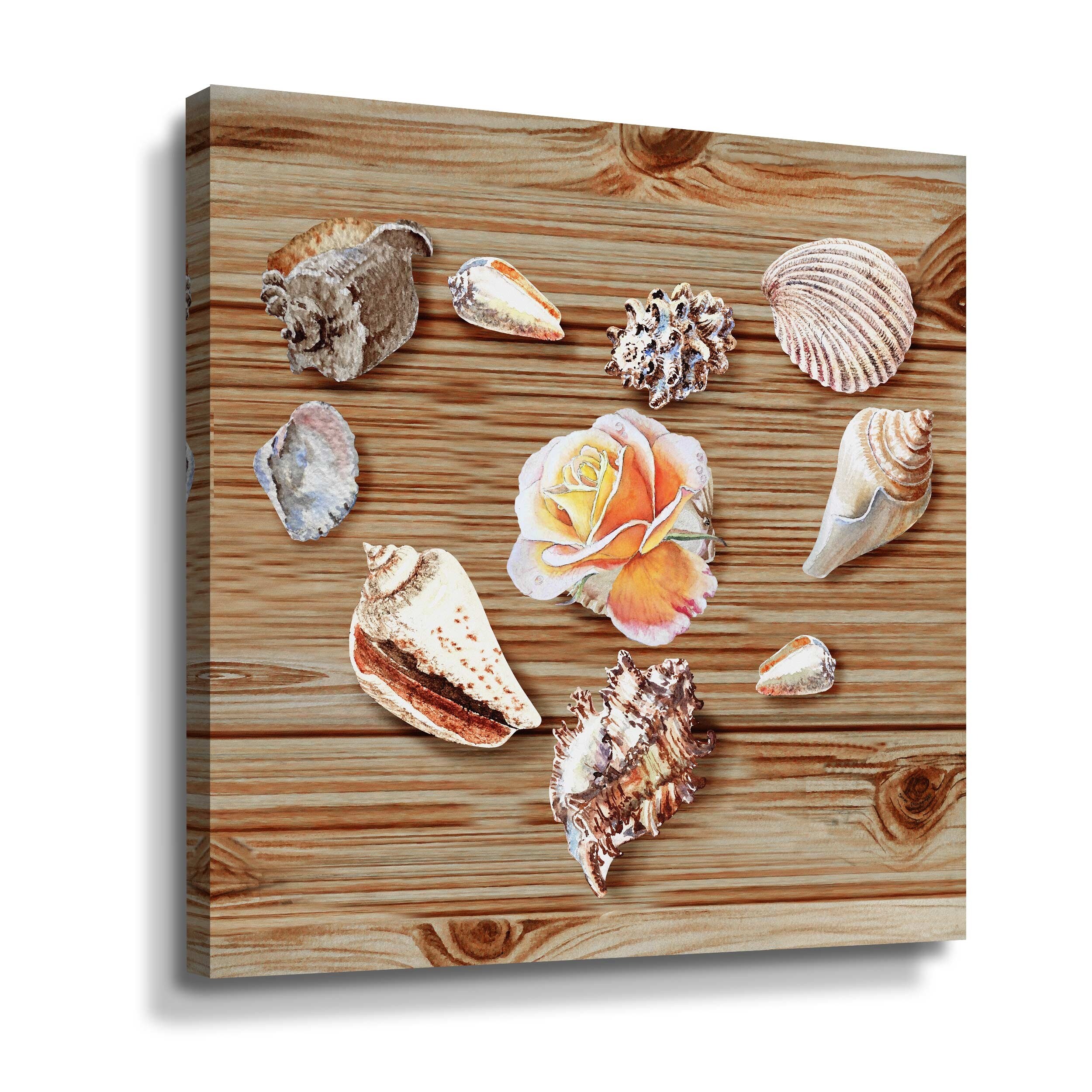 Seashells Heart Yellow Rose Flower Beach House Spa Gallery Wrapped Canvas by Irina Sztukowski