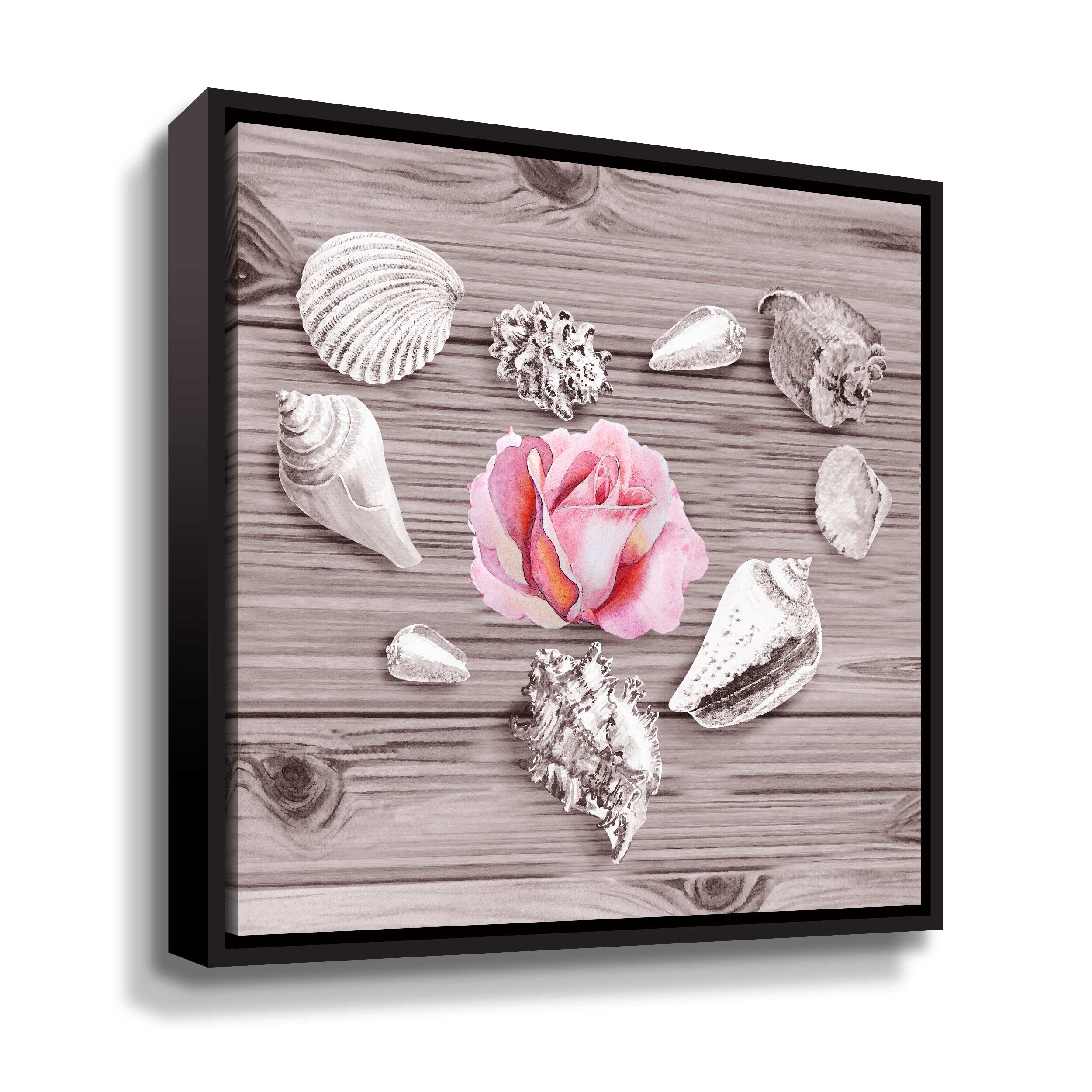 Seashells Heart With Pink Rose Flower Beach House Spa Gallery Wrapped Floater-framed Canvas by Irina Sztukowski