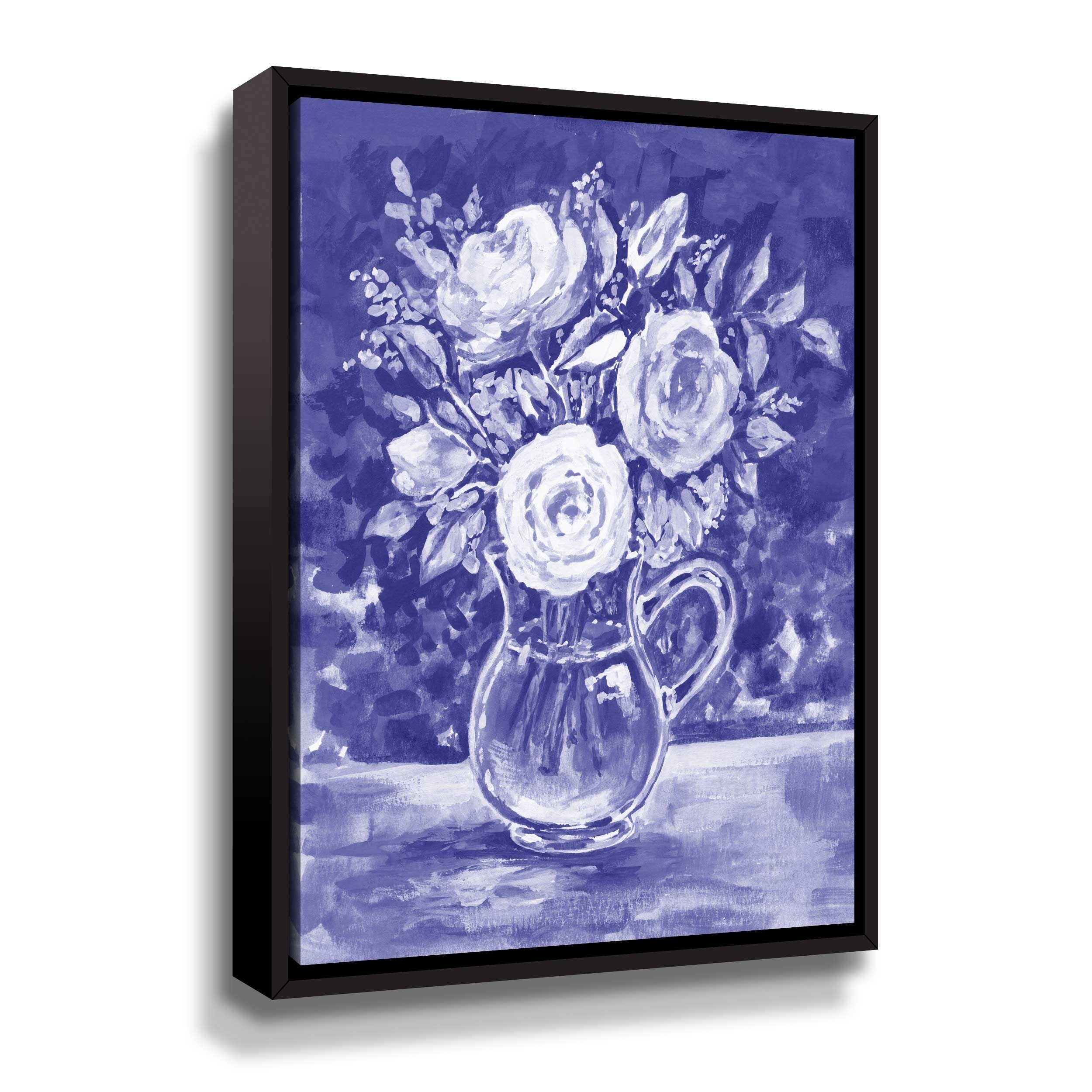 Flowers Roses Bouquet in the Vase Purple Blue Very Peri Floral Design Gallery Wrapped Floater-framed Canvas by Irina Sztukowski