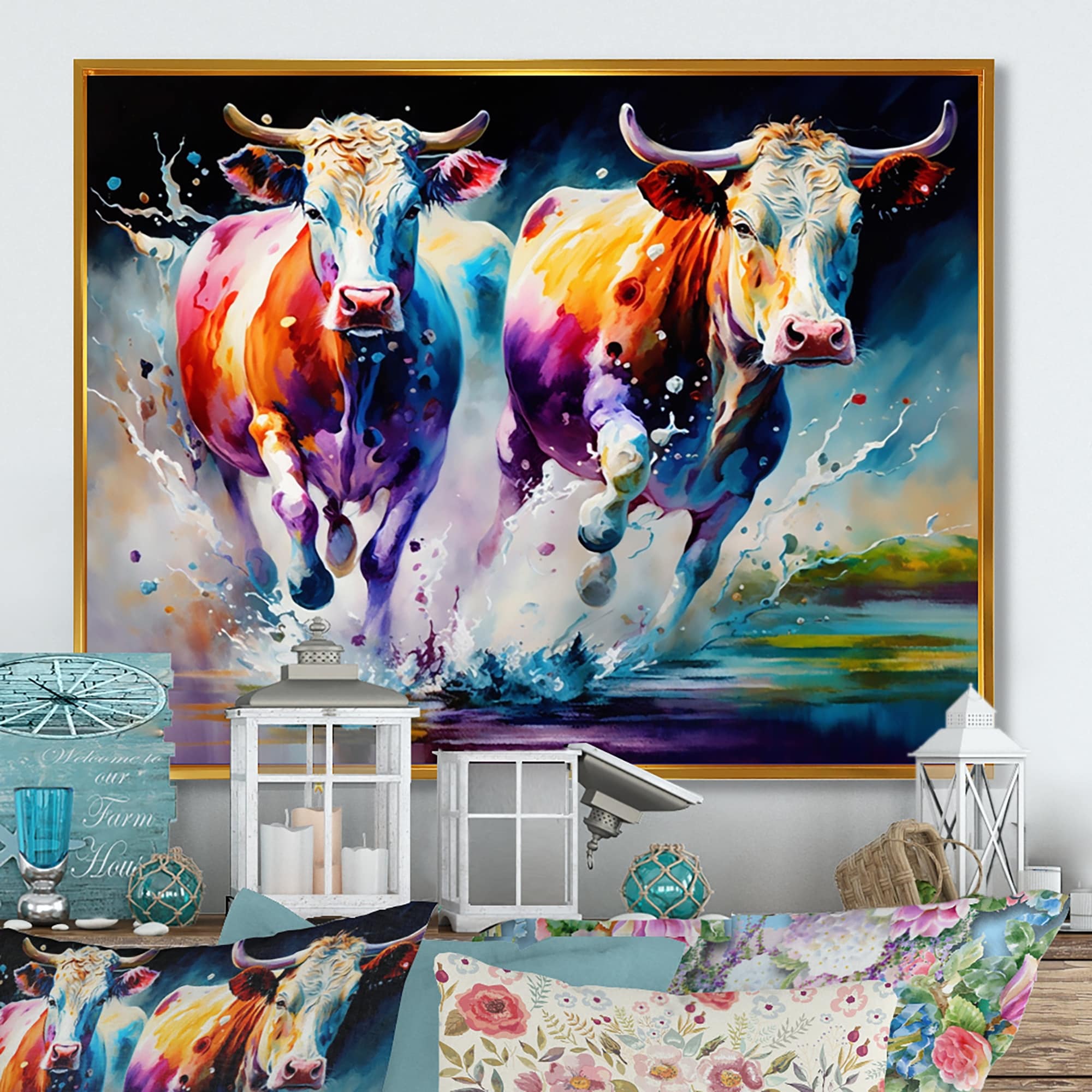 Designart "Cows Running II" Farmhouse Framed Canvas Art Print