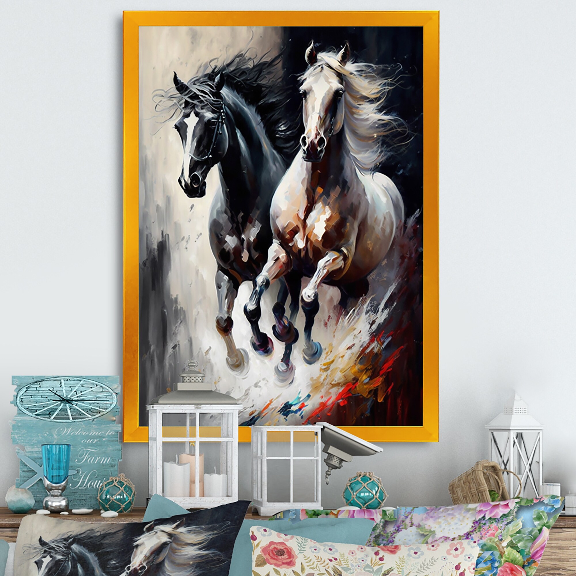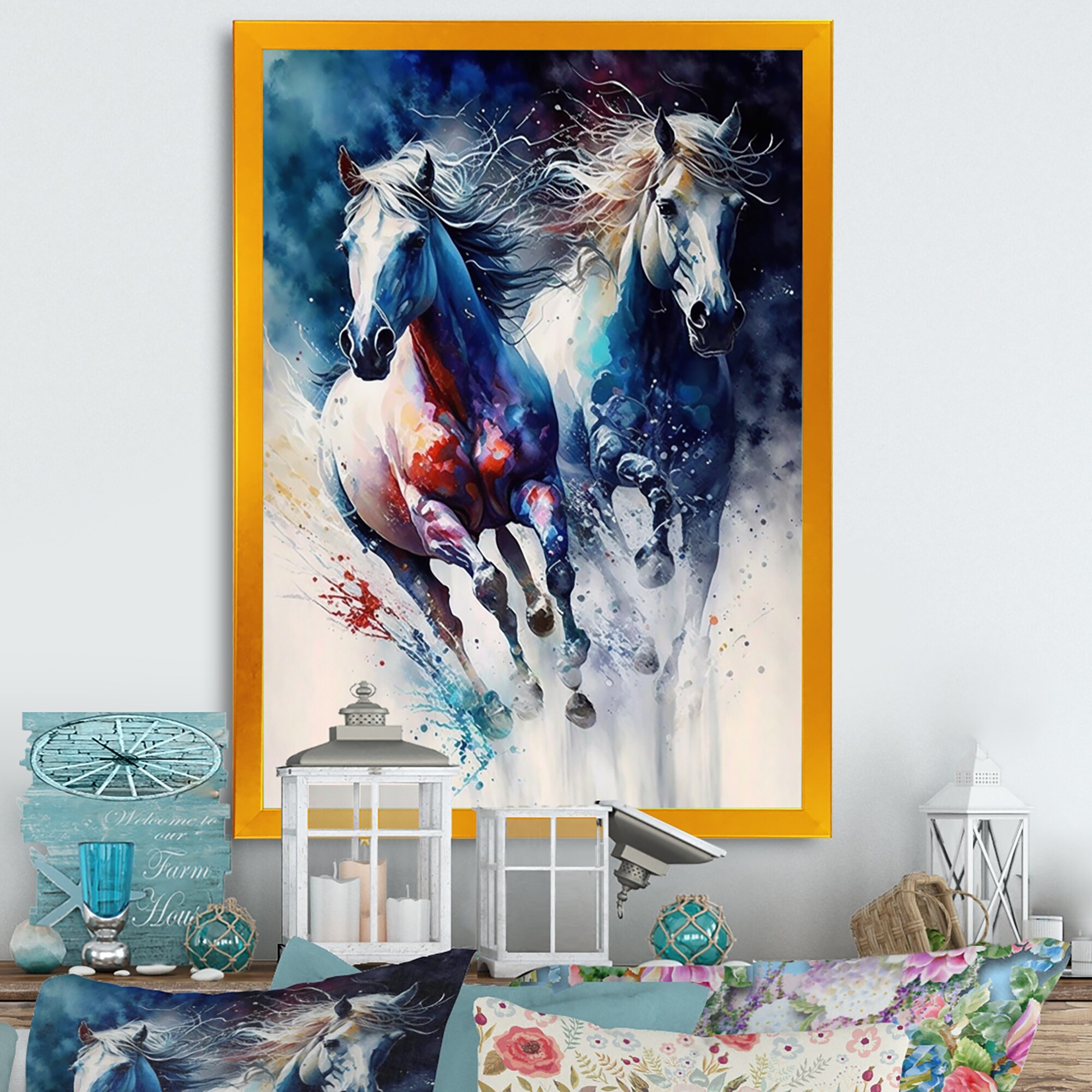 Designart "Two Running Horses With Clouds of Dust" Traditional Framed Canvas Wall Art Print