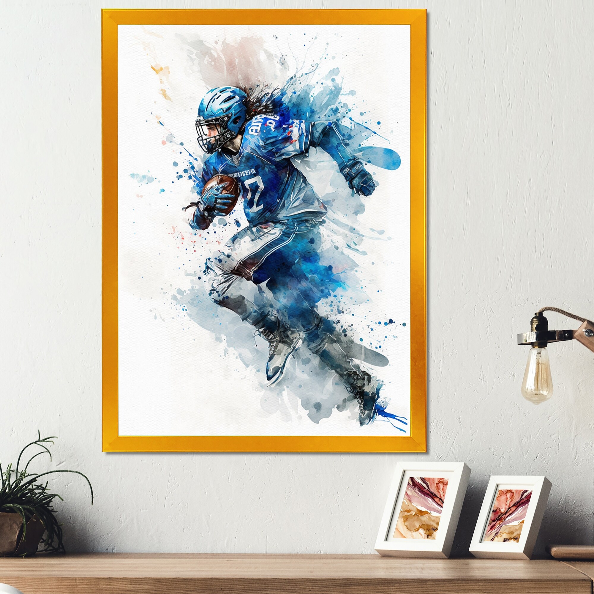Designart "Football Player on Field Running" Modern Framed Art Print
