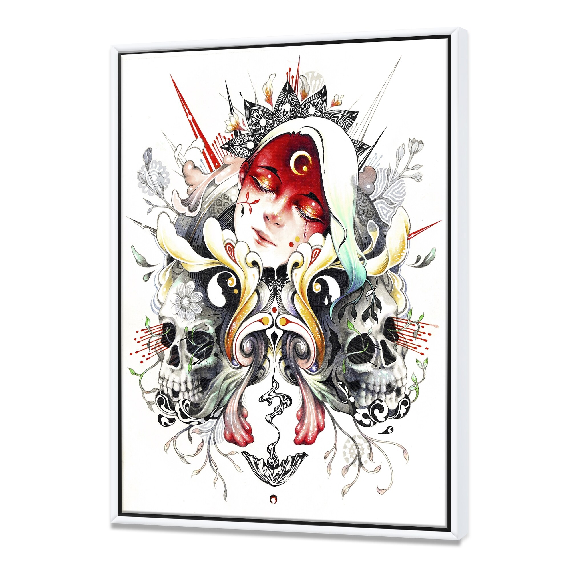 Designart "Sleeping Girl on Blossoming Skulls" Modern & Contemporary Premium Framed Canvas Wall Art
