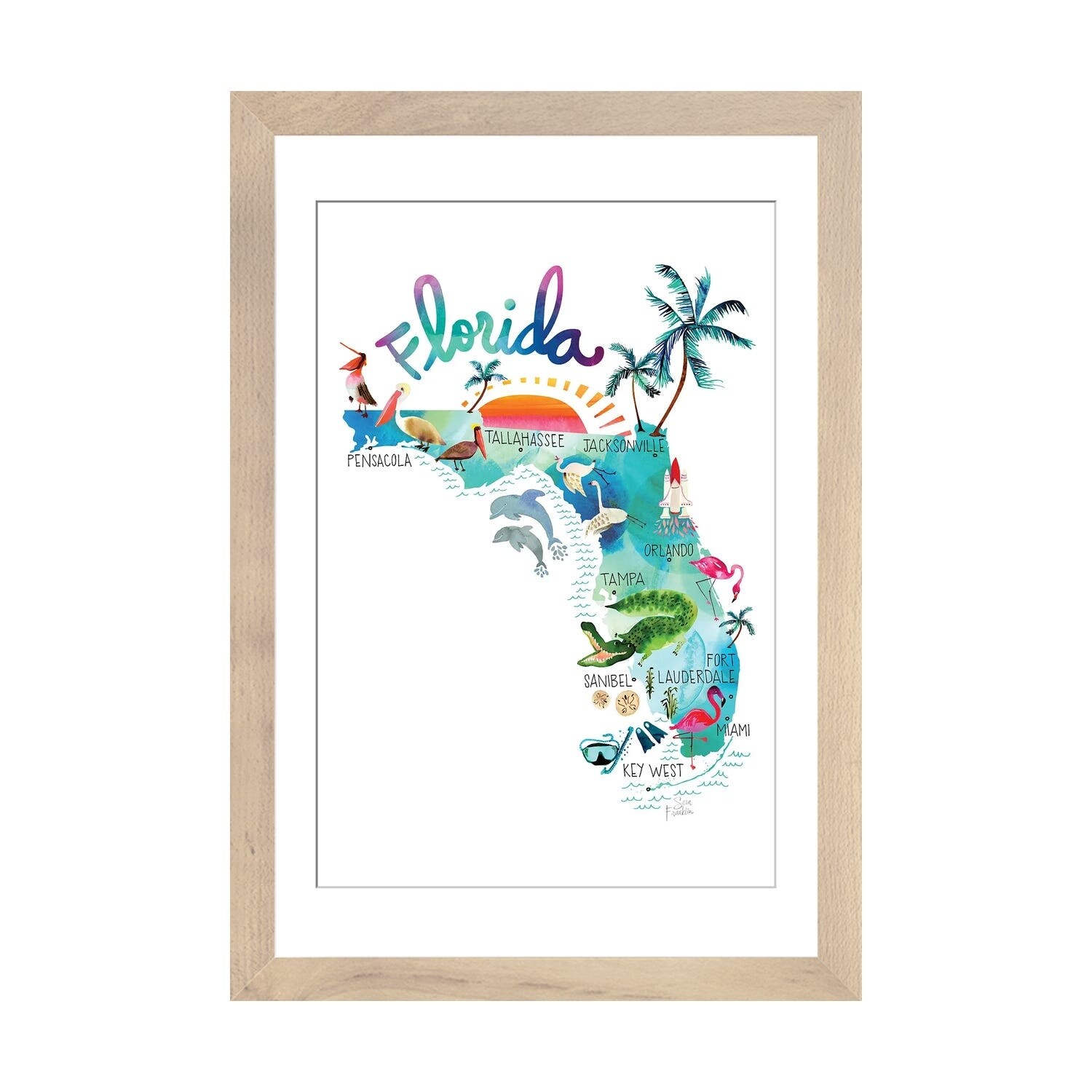iCanvas "Florida Map" by Sara Franklin