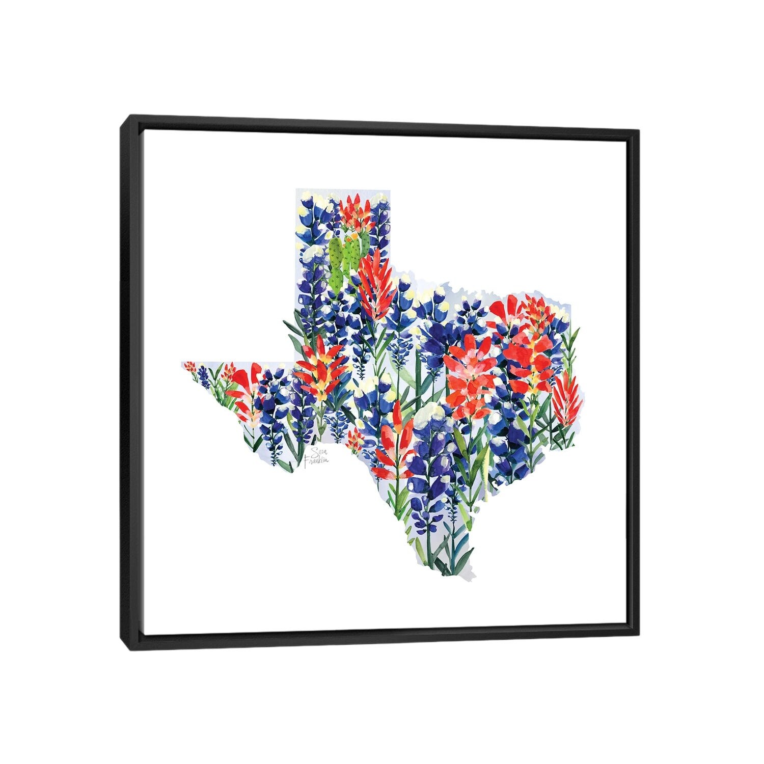 iCanvas "Texas Bluebonnets Map" by Sara Franklin Framed Canvas Print