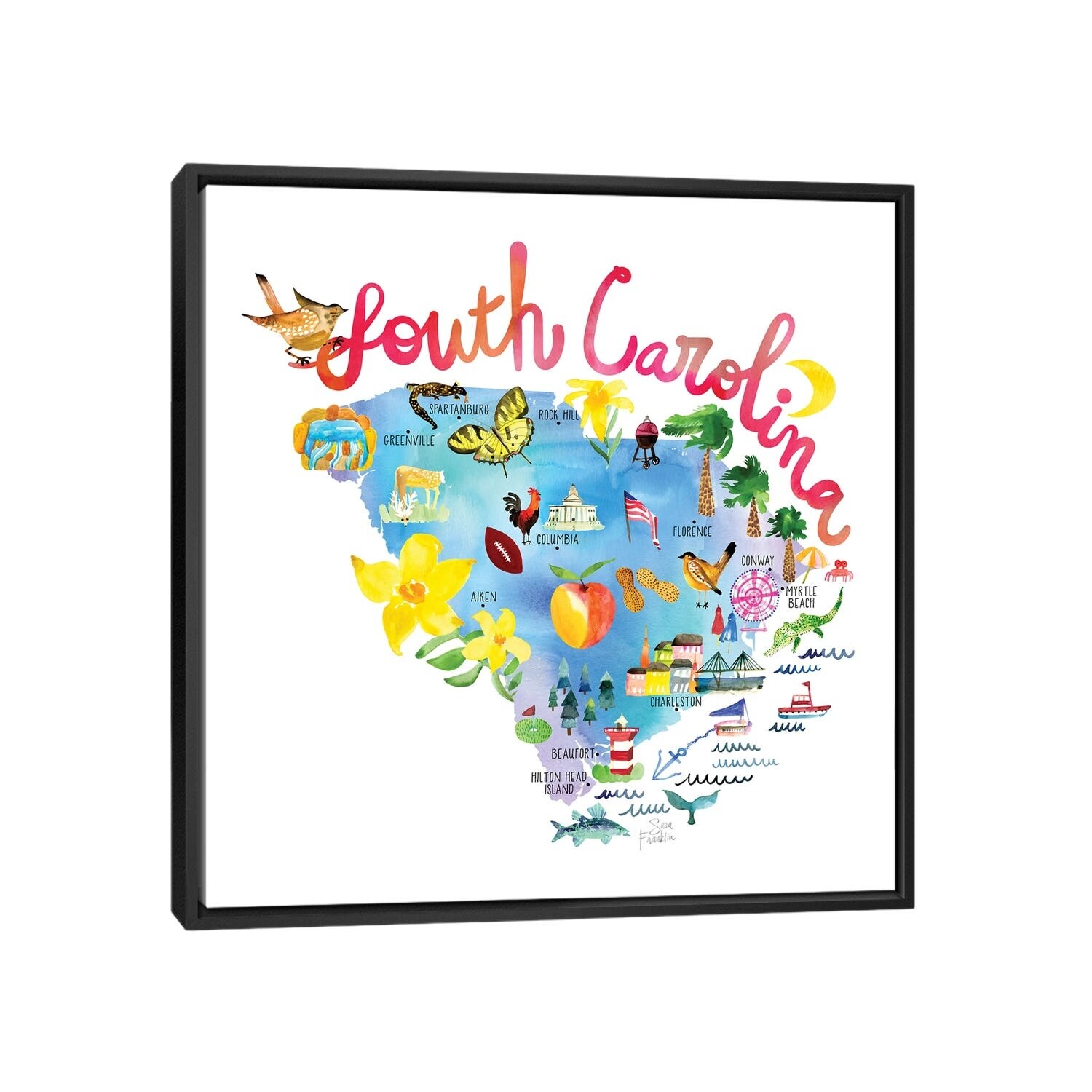 iCanvas "South Carolina Map" by Sara Franklin Framed