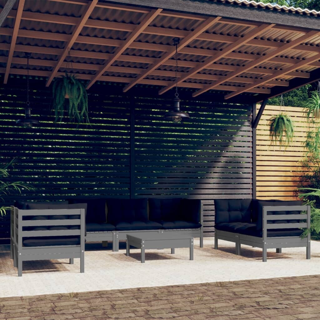 vidaXL 8 Piece Patio Lounge Set with Gray Cushions Solid Pinewood