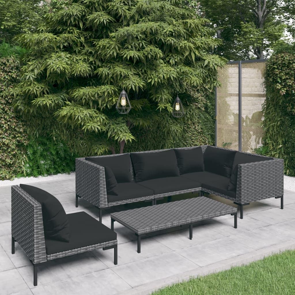 6 Piece Patio Lounge Set with Cushions Poly Rattan Gray