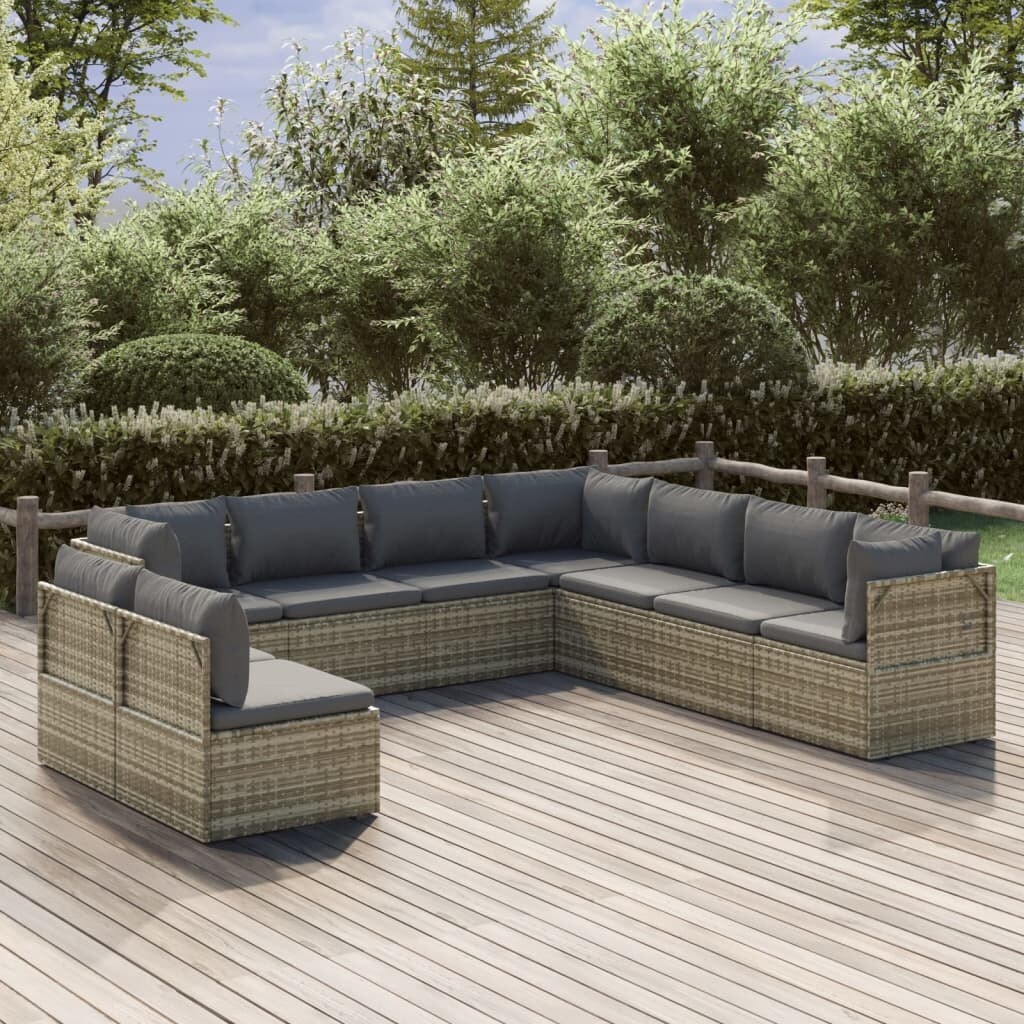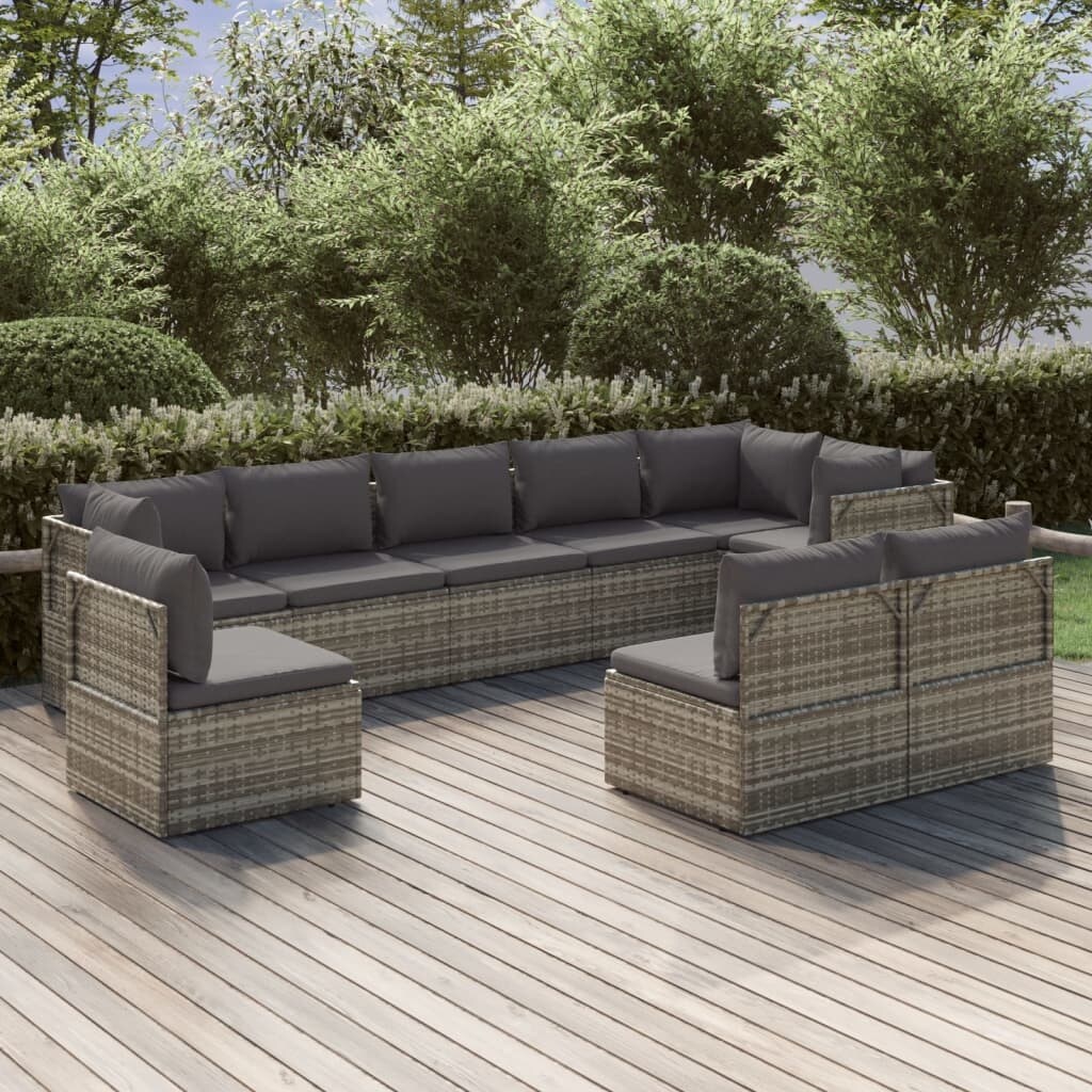vidaXL 8 Piece Patio Lounge Set with Cushions Gray Poly Rattan