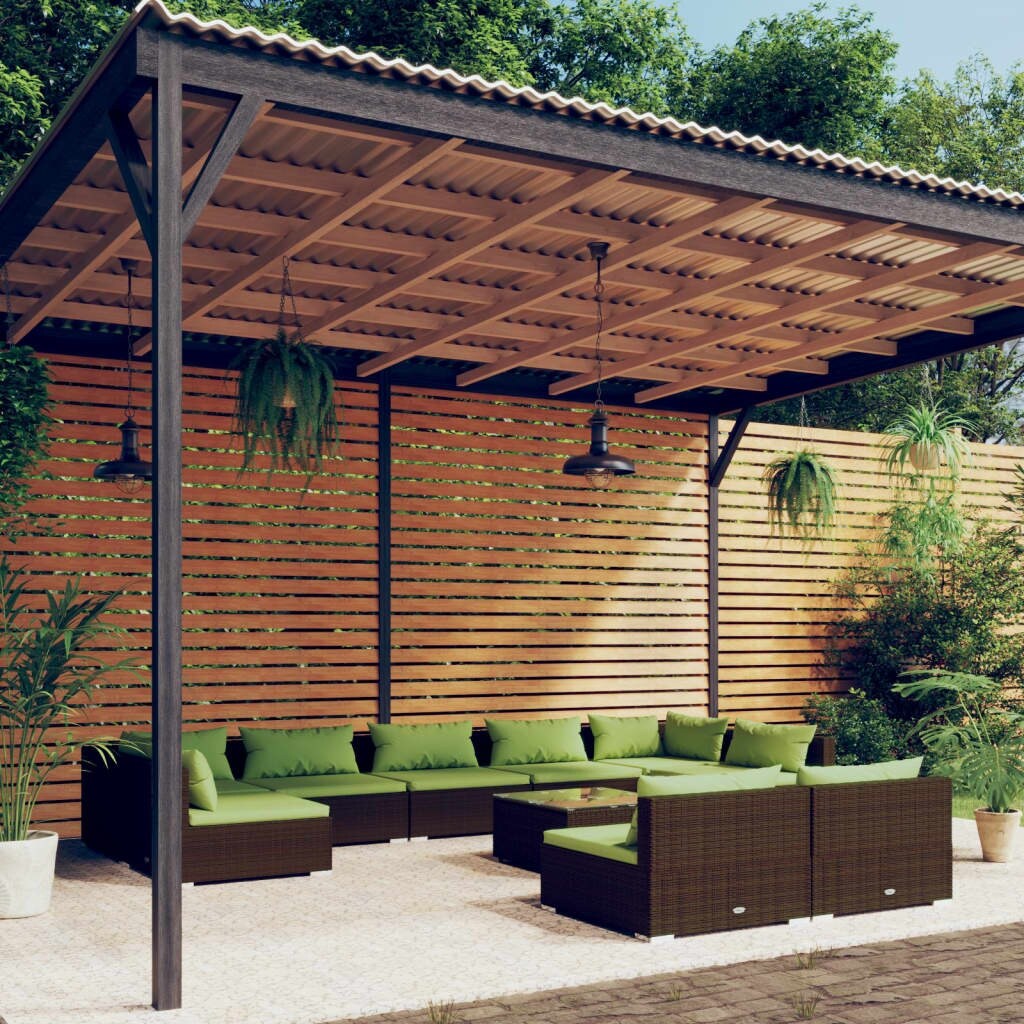vidaXL 10 Piece Patio Lounge Set with Cushions Poly Rattan Brown