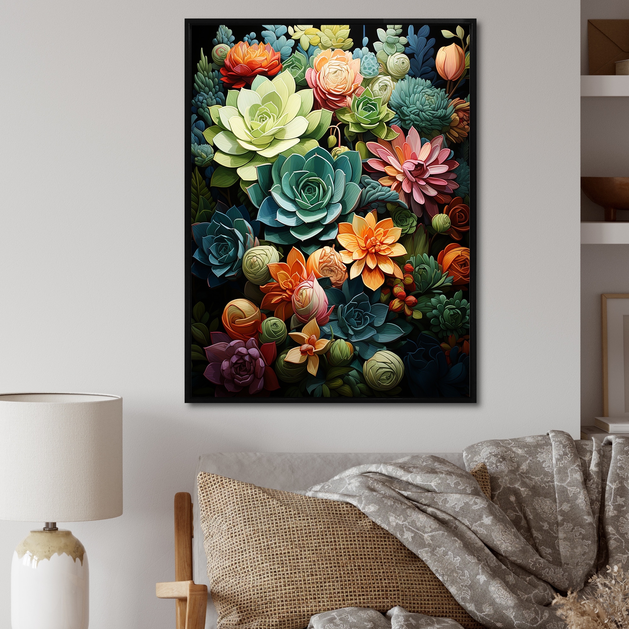 Designart "Green Balck Succulent Serenity II" Succulent Framed Wall Decor