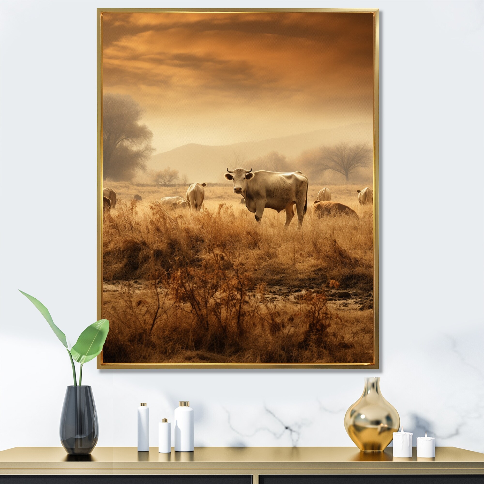 Designart "Cattle Pastoral Serenity III" Cattle Framed Canvas Wall Art