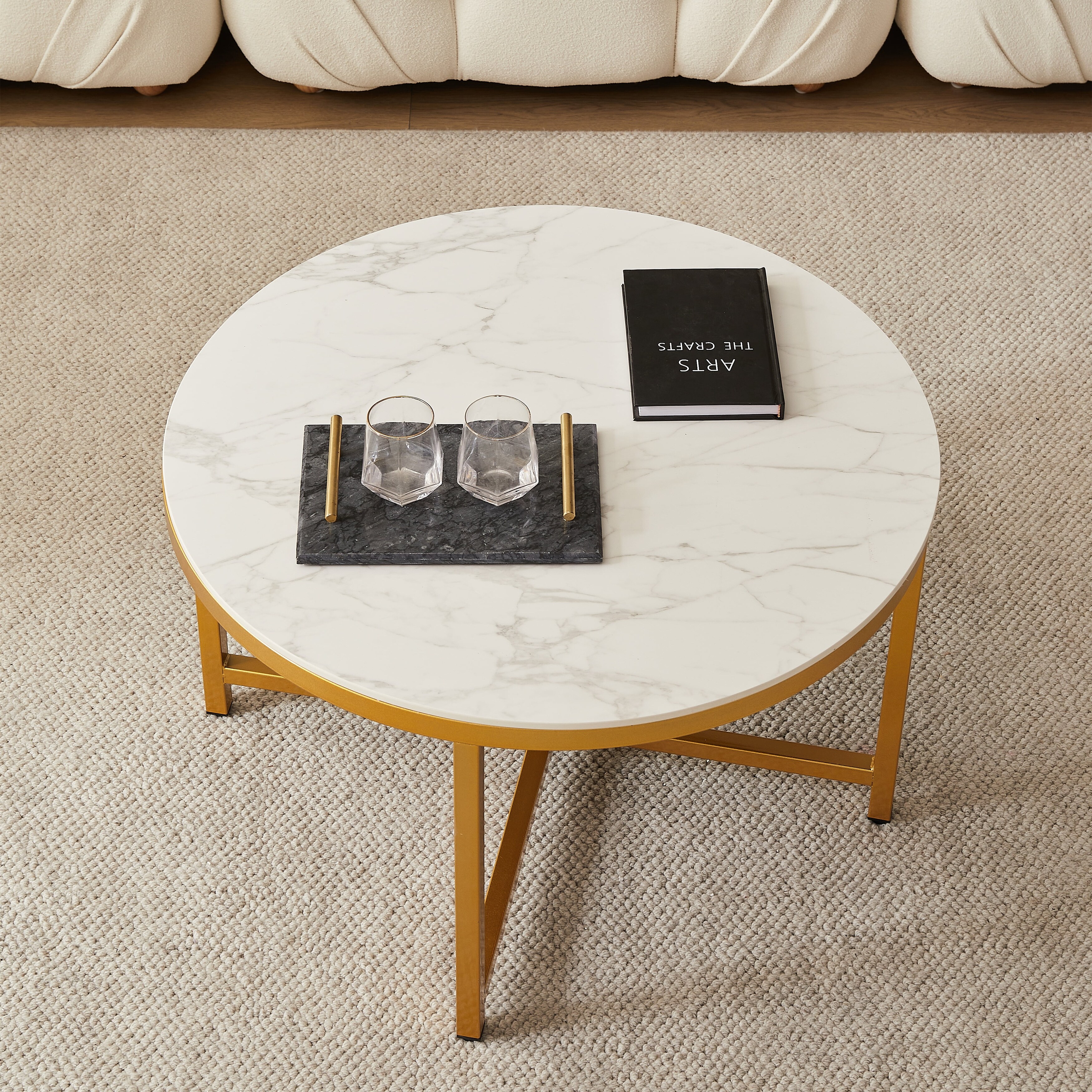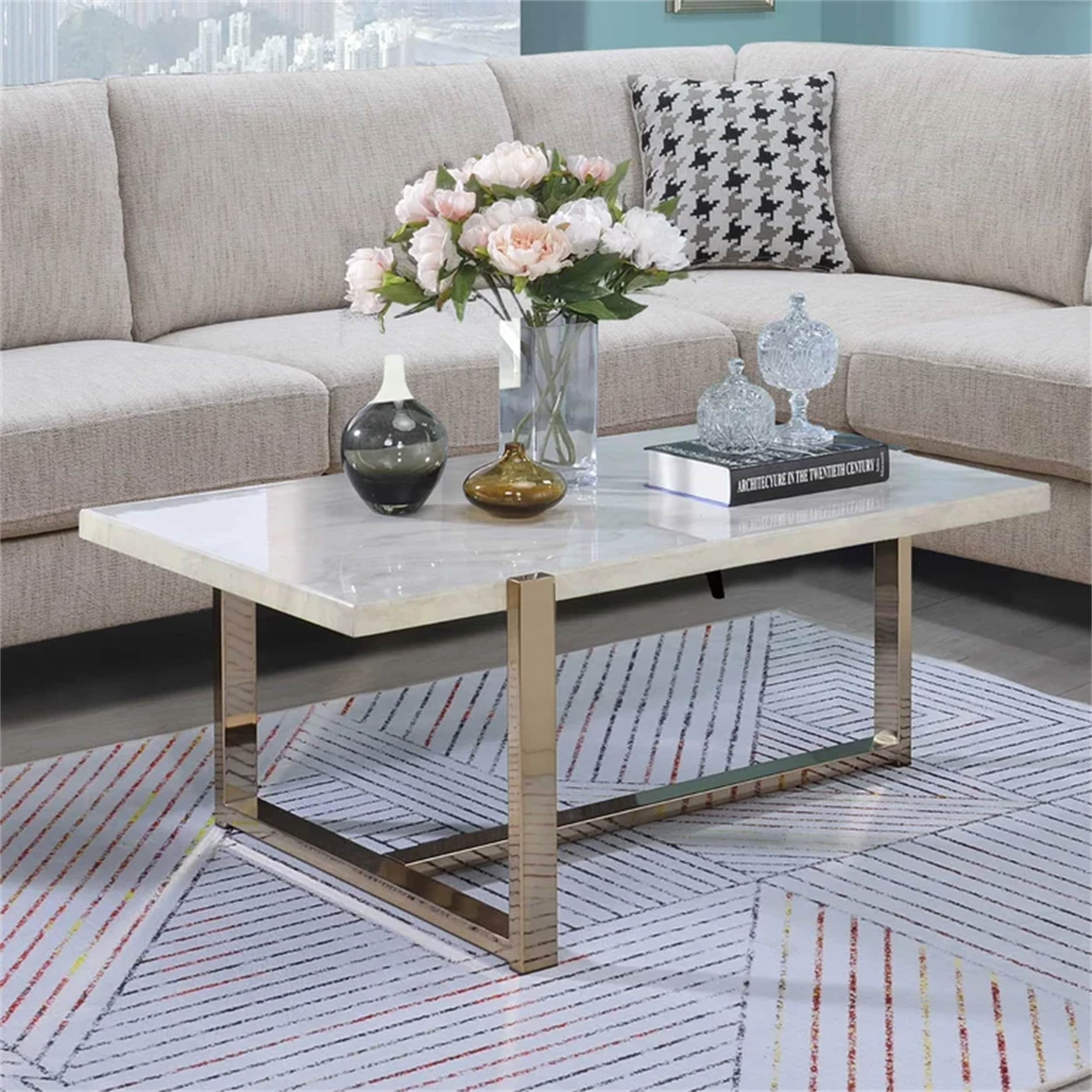 Coffee Table,Side Table in Faux Marble & Champagne,Metal