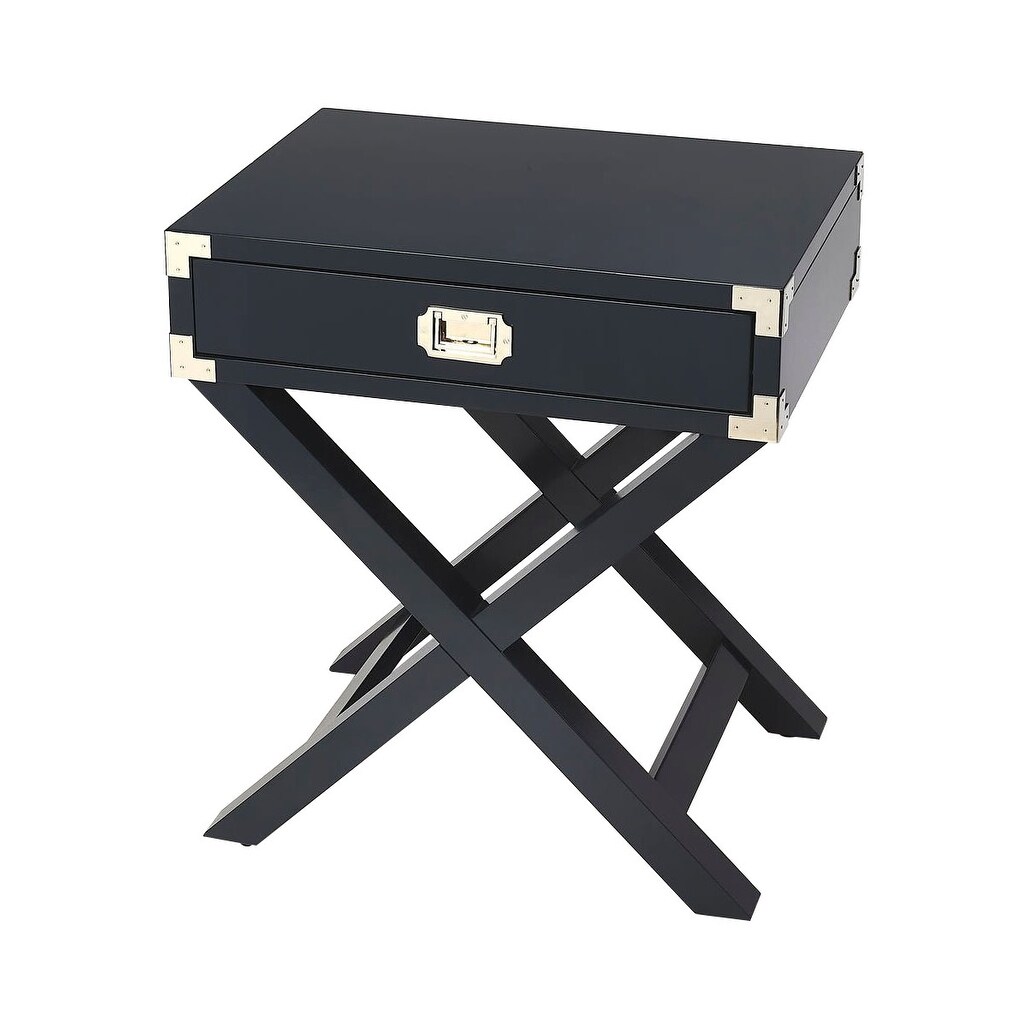 Transitional Rectangular Campaign Side Table - Blue - 18"Dx24.25"Wx27.5"H