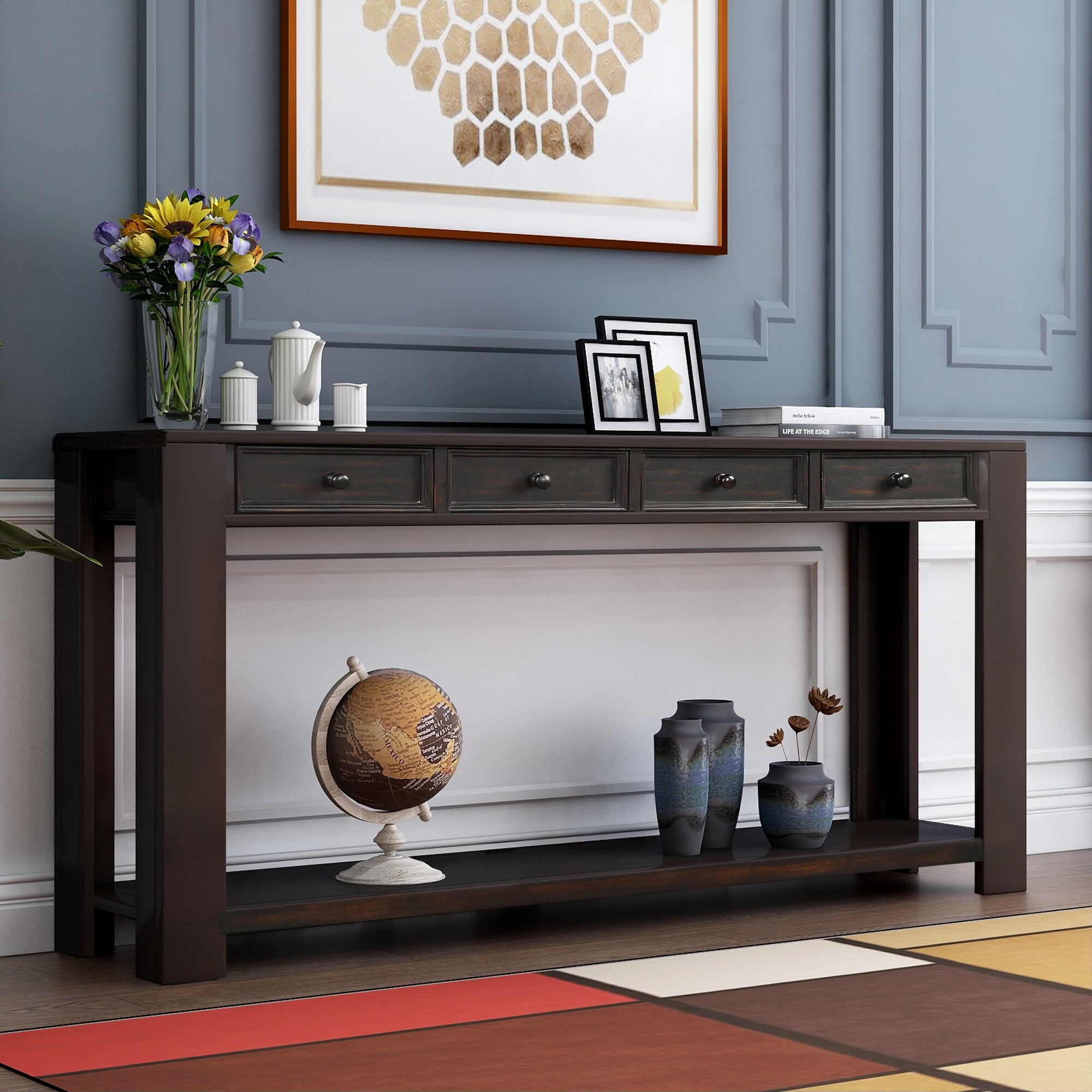 Classic Solid Wood Console Table 64" Sofa Table with 3 Drawers & Open Shelf, Extra-Long Extra-thick Entryway Table Side Table