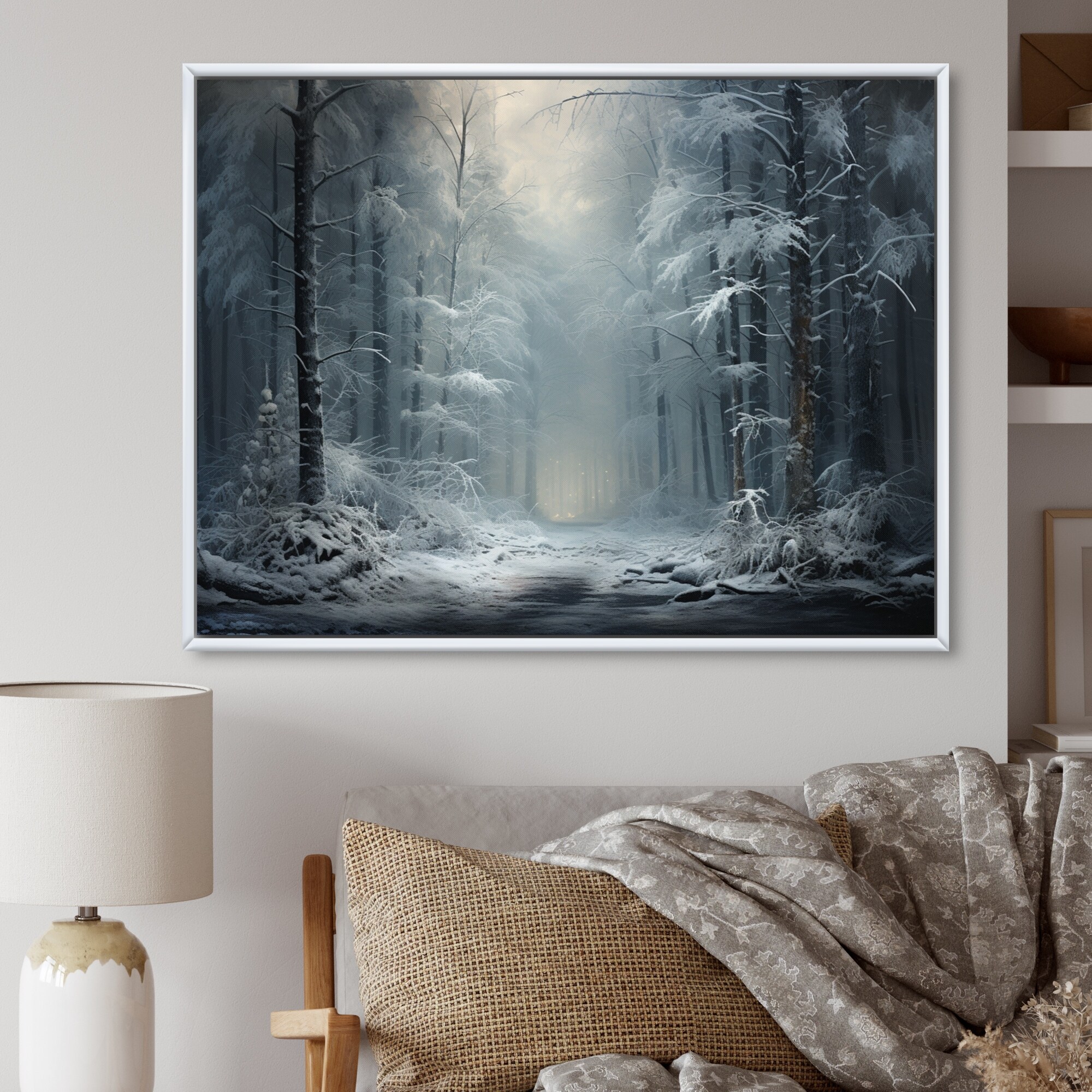 Designart "Winter Landscape Silent Woods" Winter Landscape Framed Canvas Wall Art