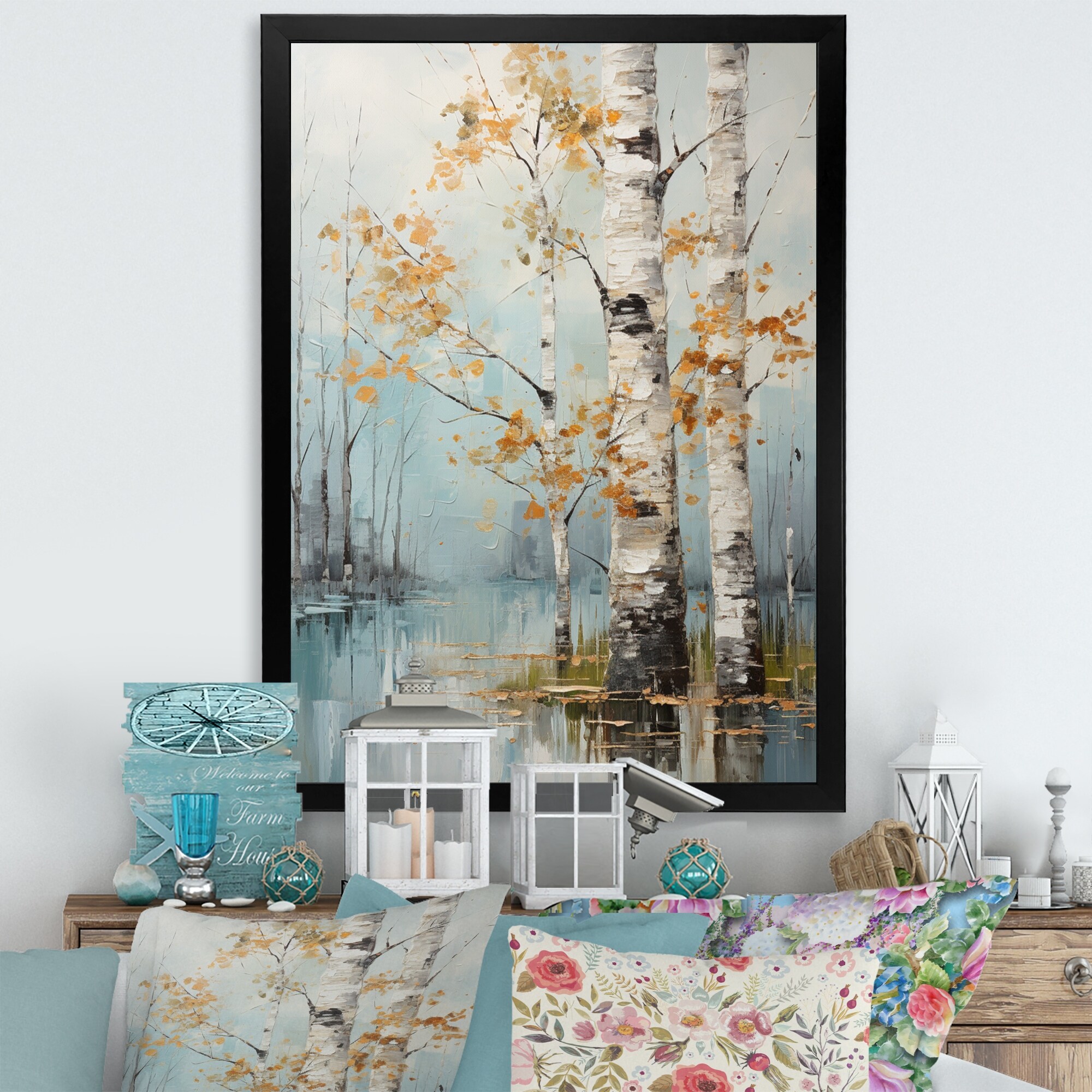 Designart "Birch Woods Silent Woods VI" Tree Birch Framed Wall Art Prints