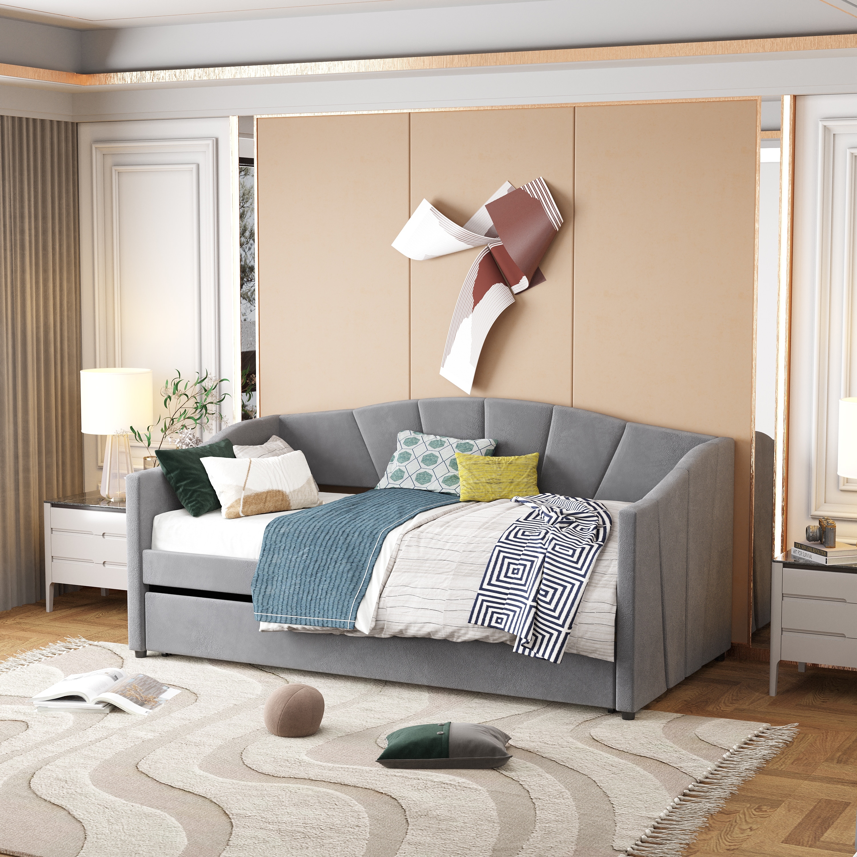 Modern Luxury Tufted Button Daybed, Built-in Solid Slat Support
