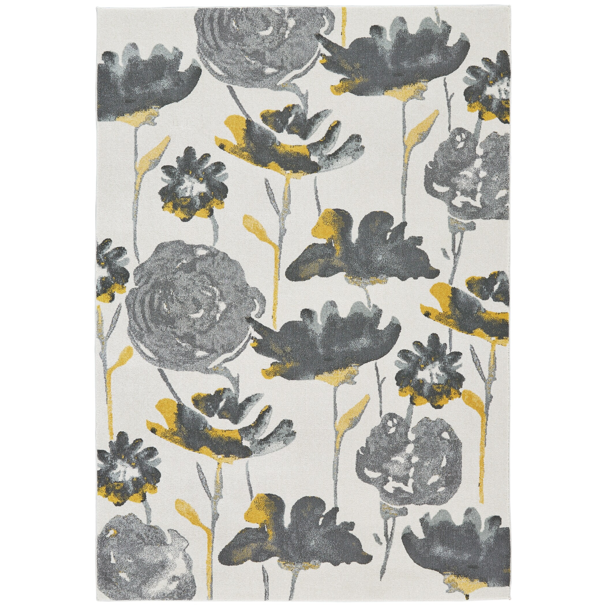 Milania Contemporary Floral Rug, Slate Gray/Yellow, Area Rug