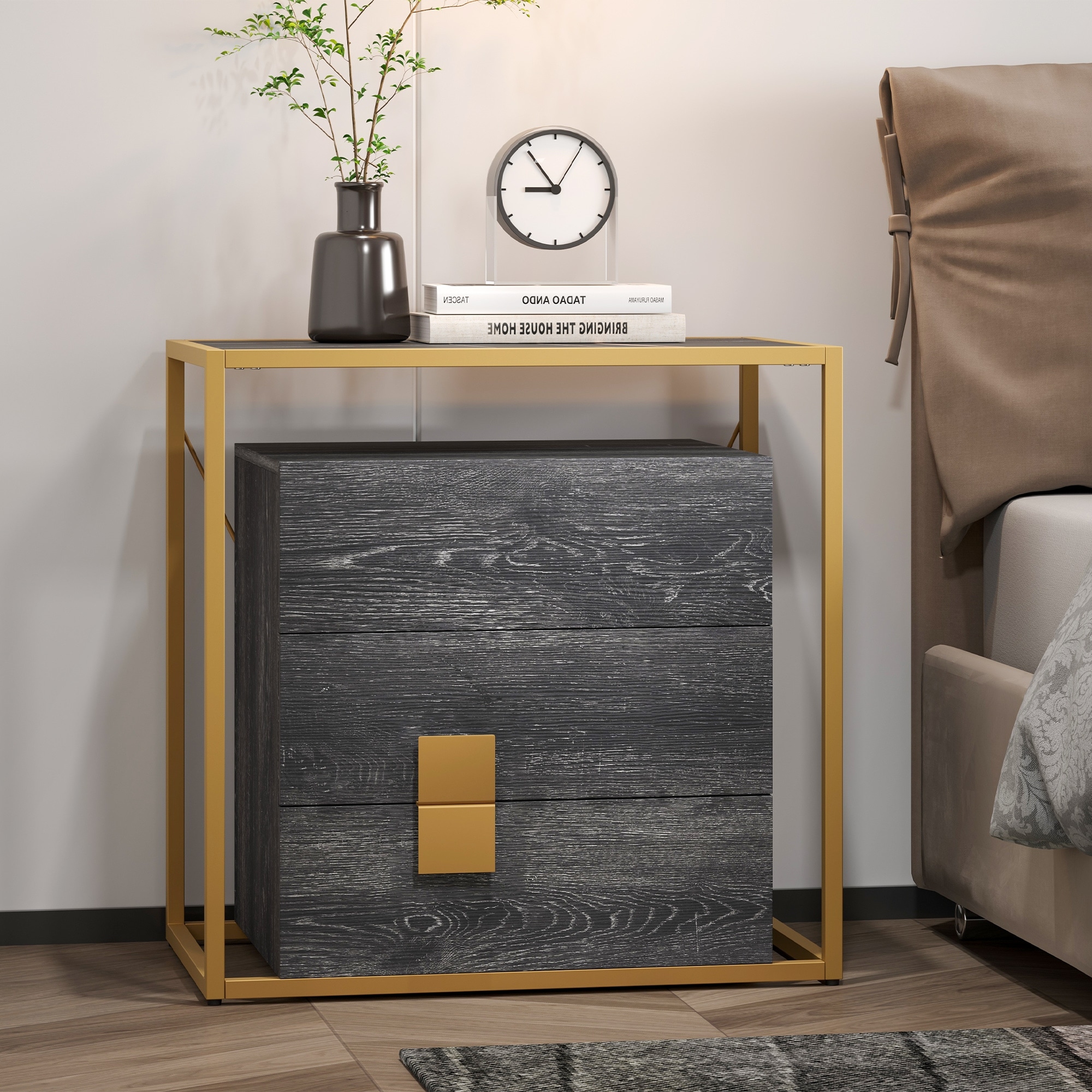 Moasis 3 Drawers Wooden Nightstand with Slate Top and Metal Frame
