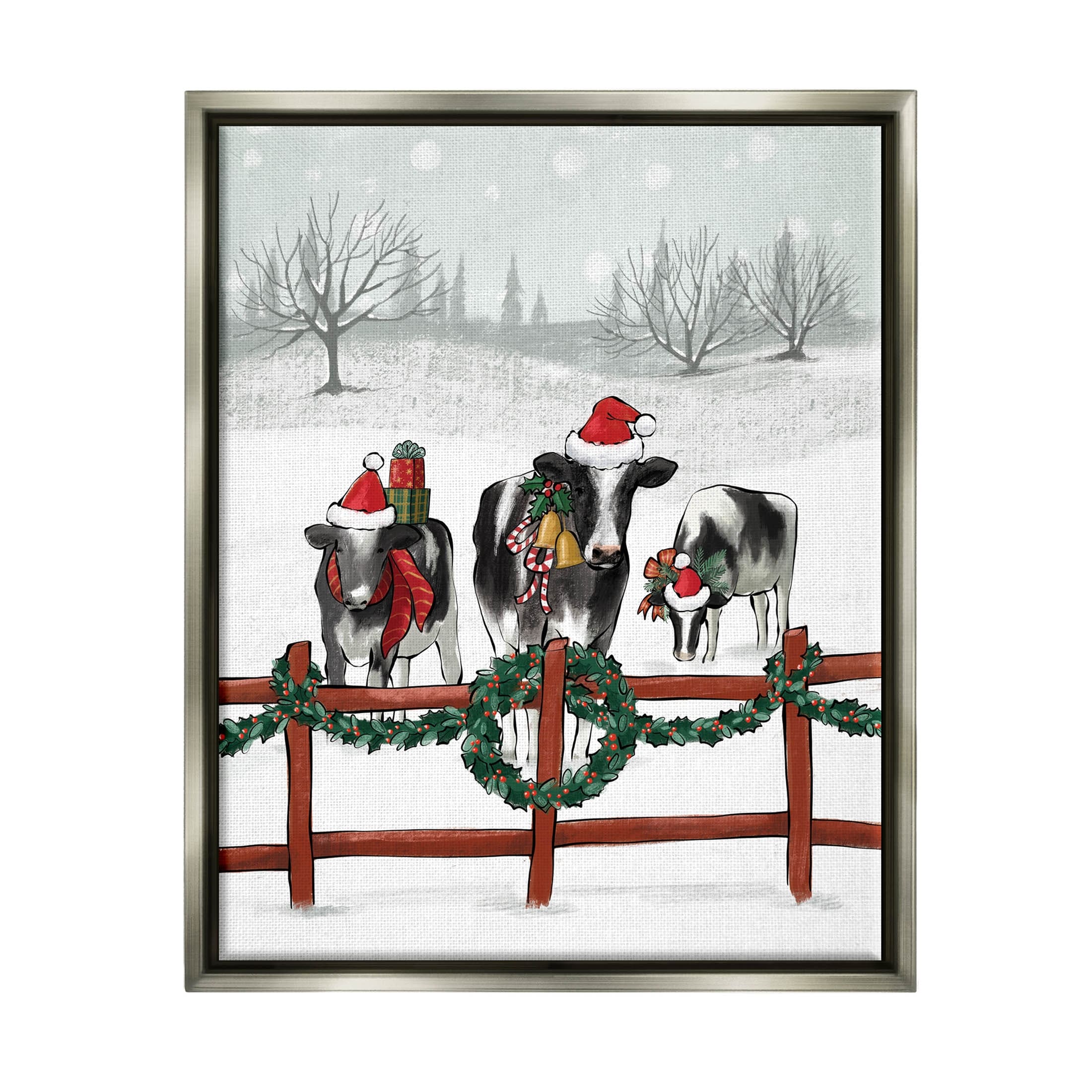 Stupell Industries Holiday Cows Farmland Fence Floater Canvas Wall Art by Caverly Smith