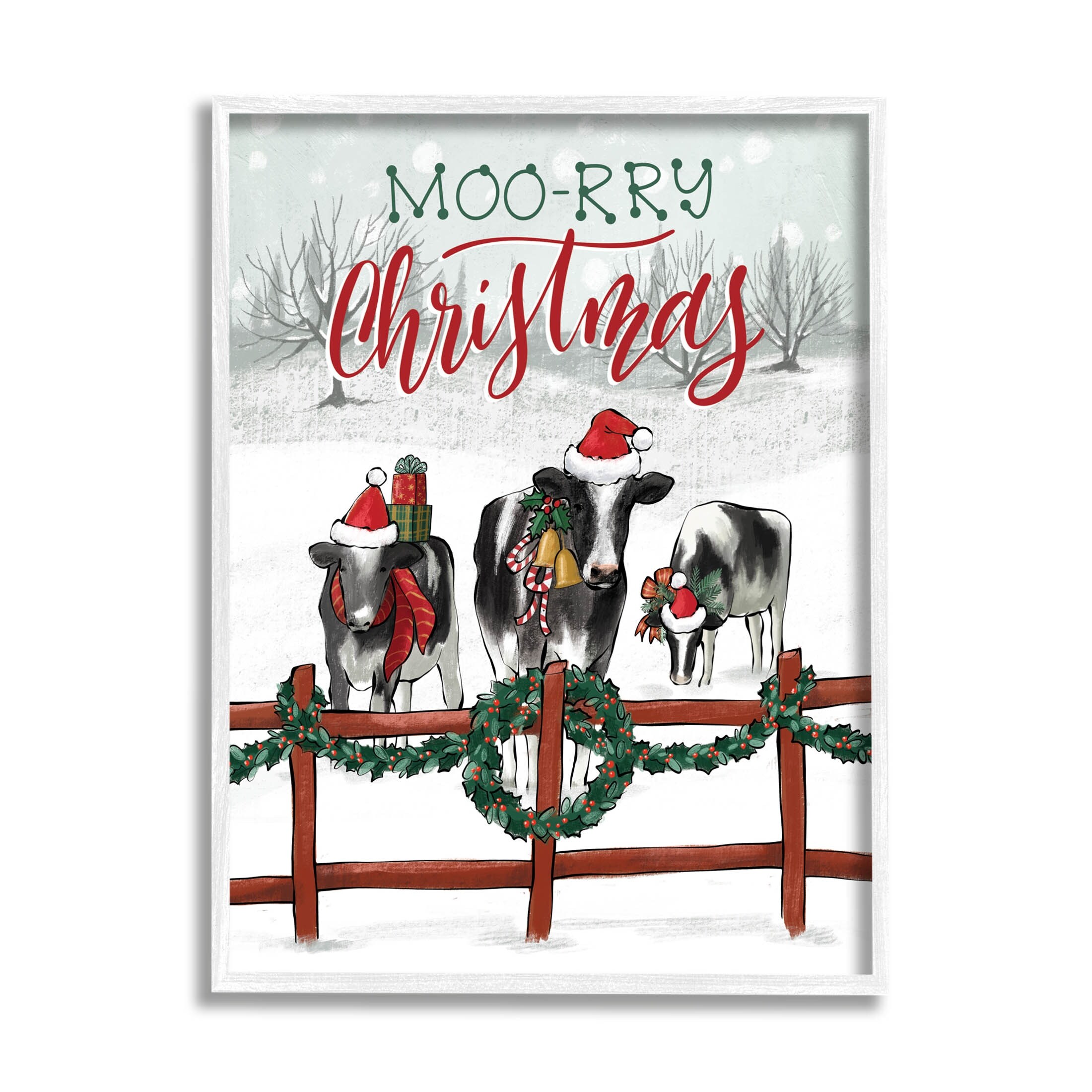 Stupell Industries Moo-rry Christmas Holiday Snowy Cows Framed Giclee Art by Caverly Smith