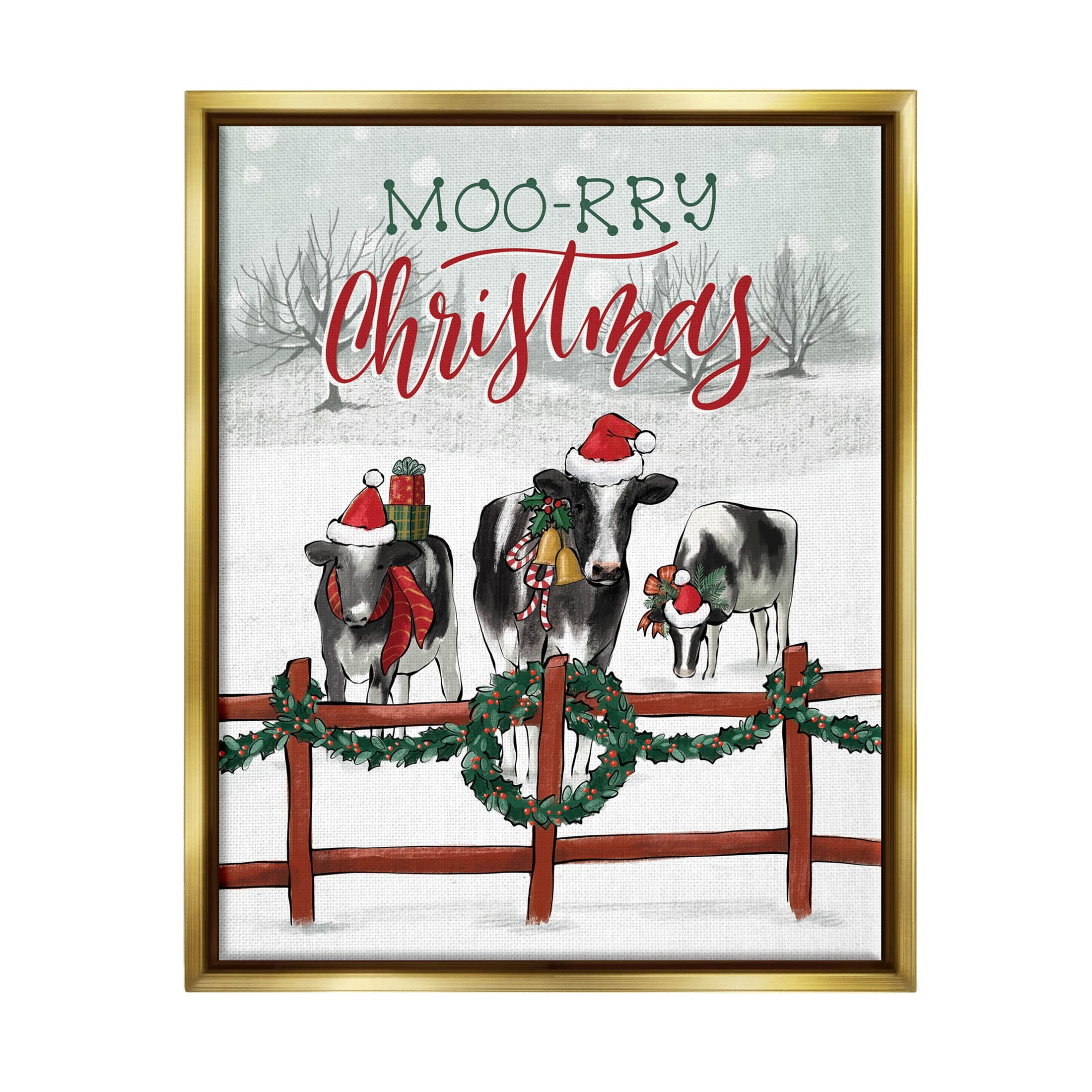 Stupell Industries Moo-rry Christmas Holiday Snowy Cows Floater Canvas Wall Art by Caverly Smith