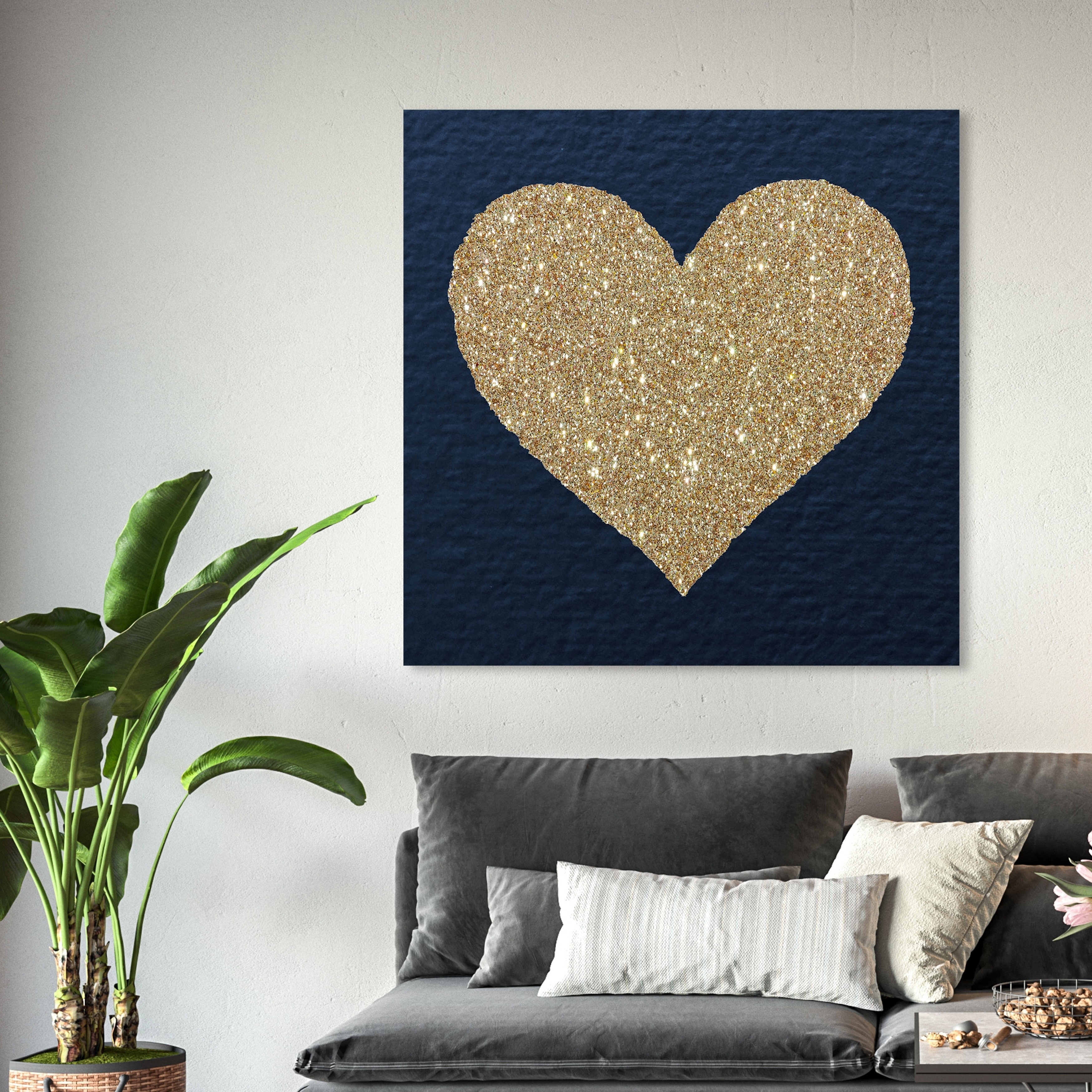 Oliver Gal Fashion and Glam Wall Art Canvas Prints 'Ever After Sparkle' Hearts - Gold, Blue