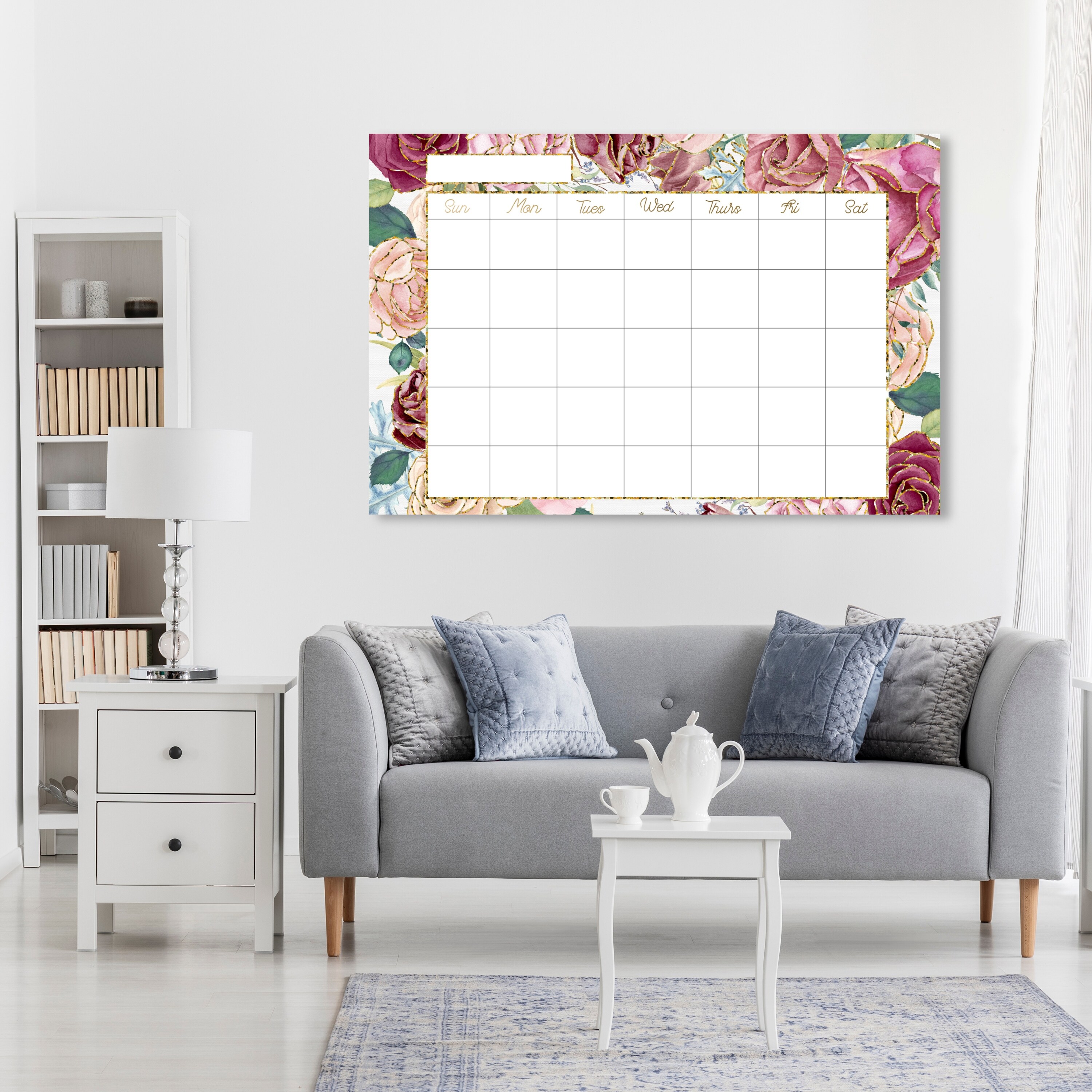 Oliver Gal 'Sparkling Flowers Calendar' Floral and Botanical Wall Art Canvas Print Florals - Pink, Gold