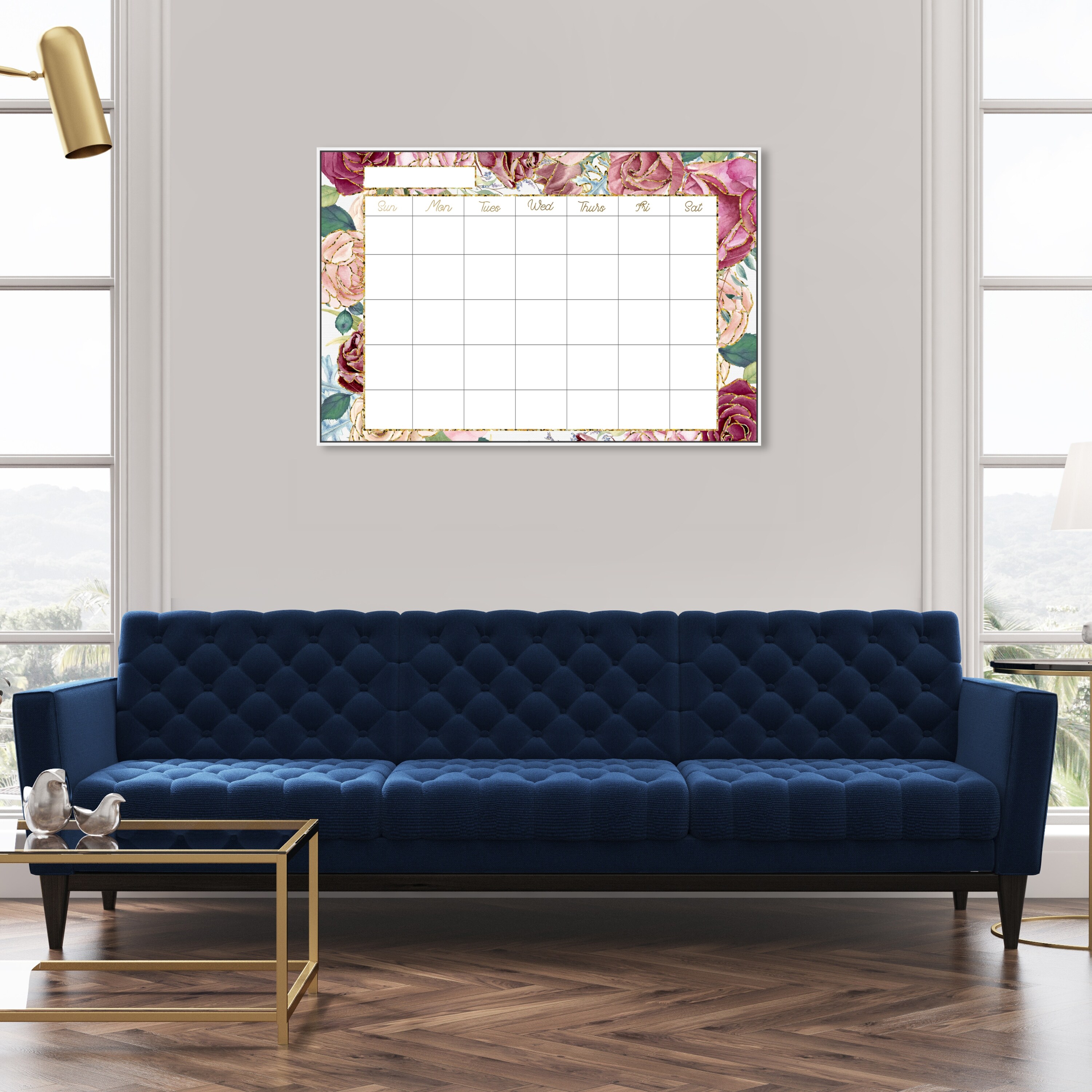 Oliver Gal 'Sparkling Flowers Calendar' Floral and Botanical Wall Art Framed Canvas Print Florals - Pink, Gold