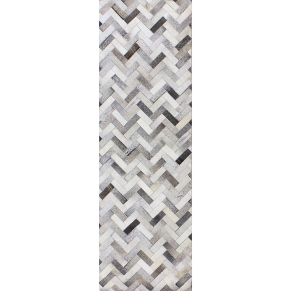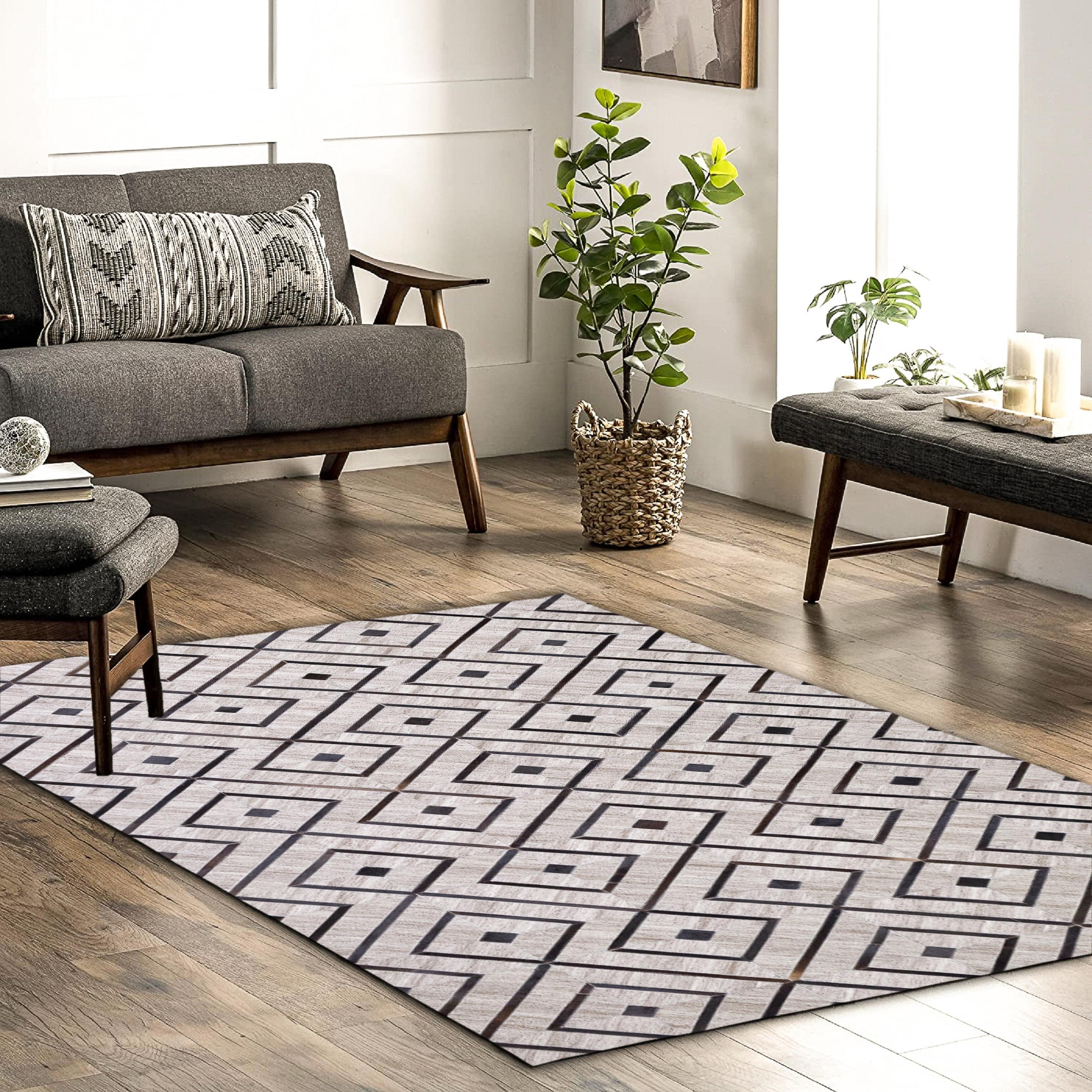 Hand-Stitched Grey Diamond Leather Area Rug by Tufty Home - 5' x 8'
