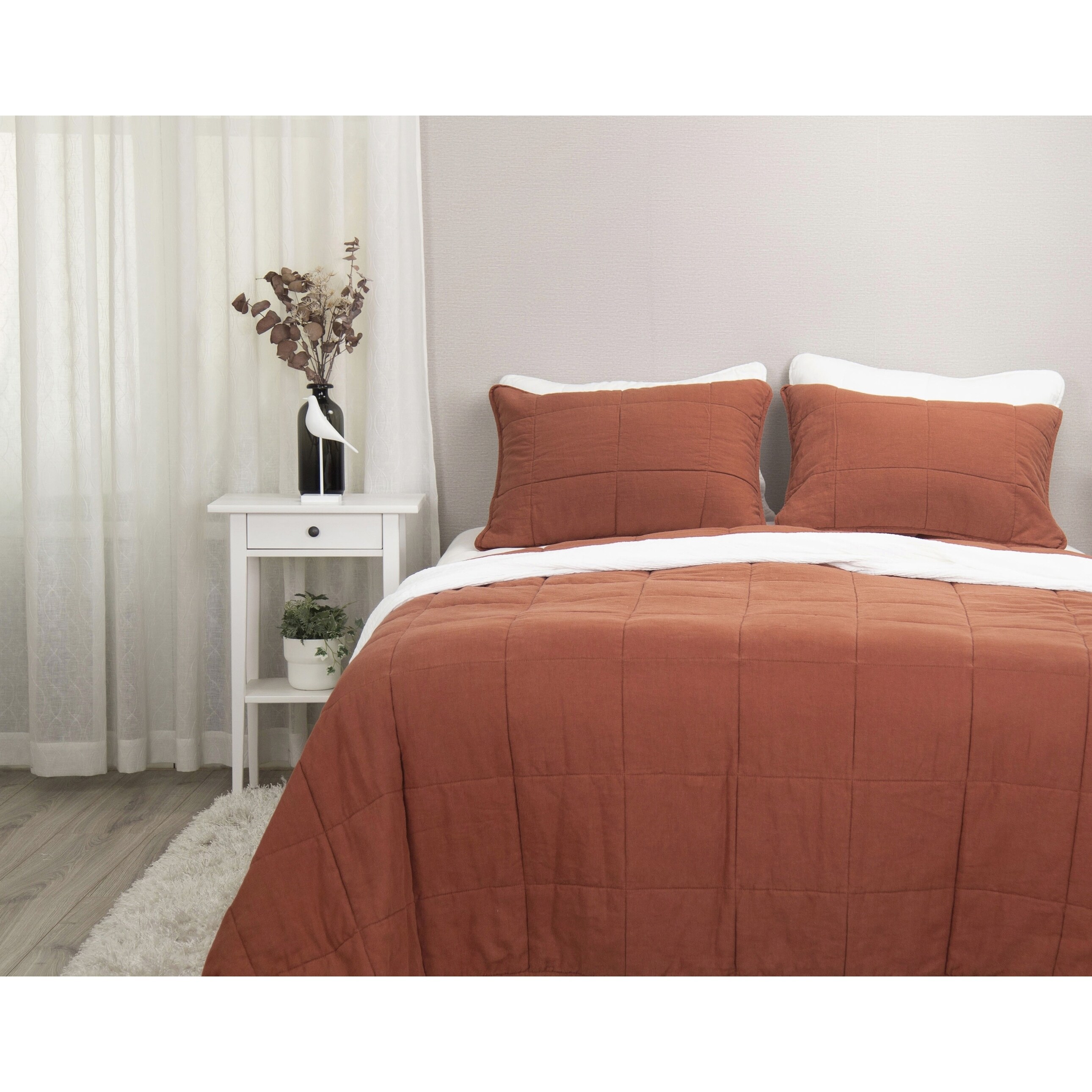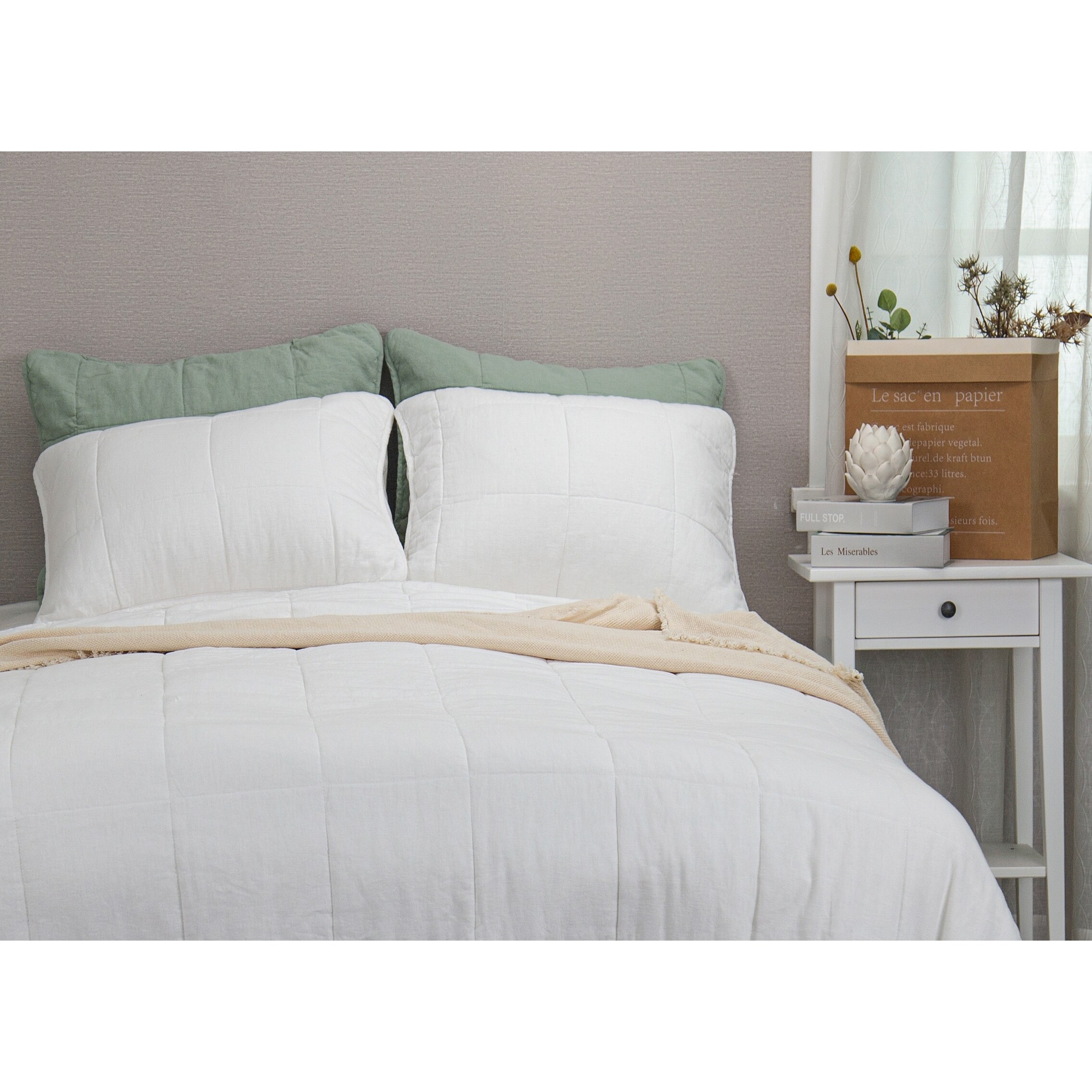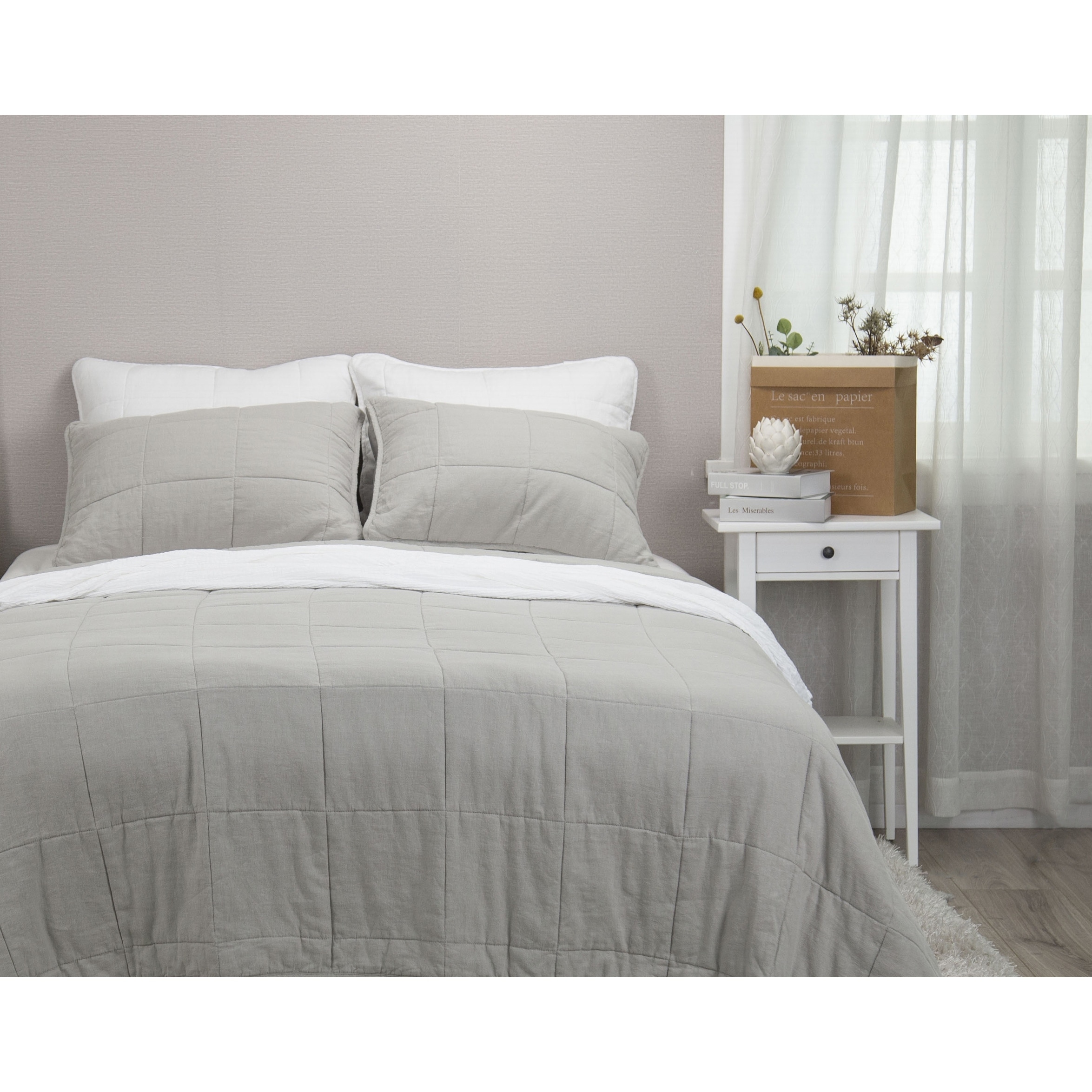 Stone Washed Linen Blend Quilt Set Lightweight Box Stitch