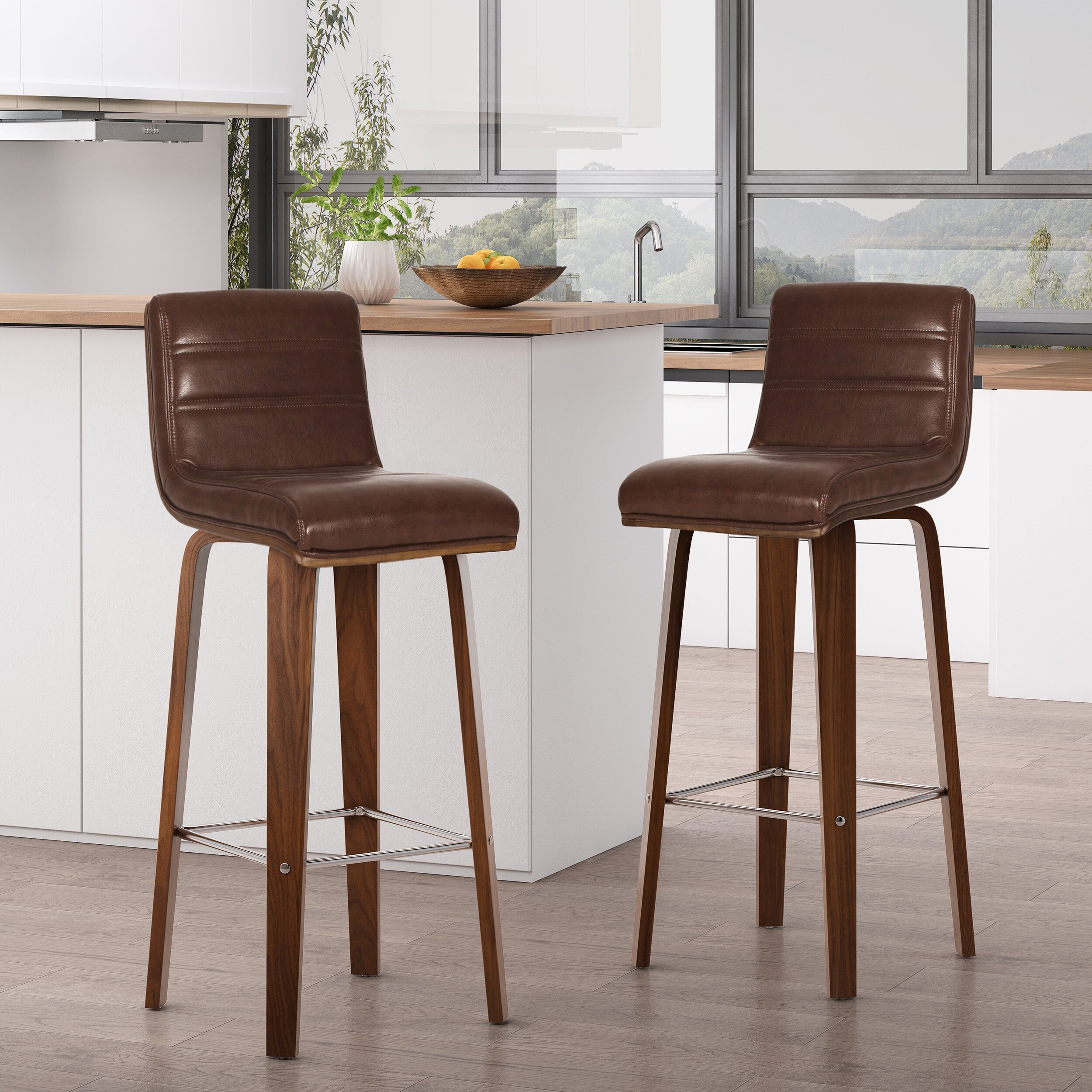 Hargis Channel Stitch Bentwood Swivel Barstools by Christopher Knight Home