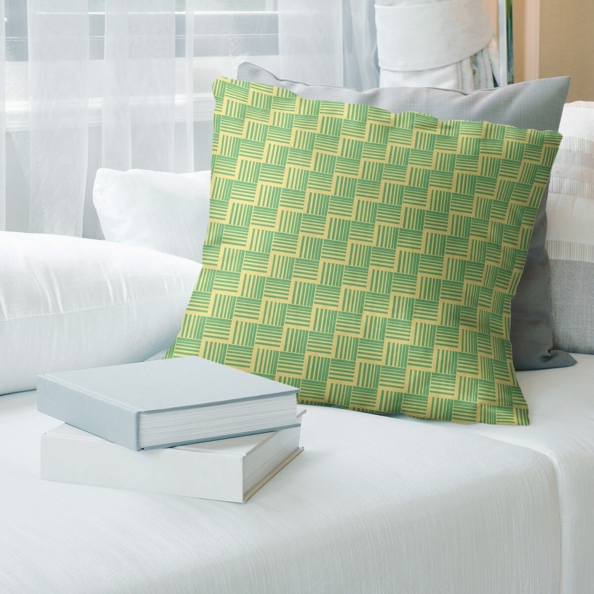 Two Color Basketweave Stripes with Yellow Throw Pillow