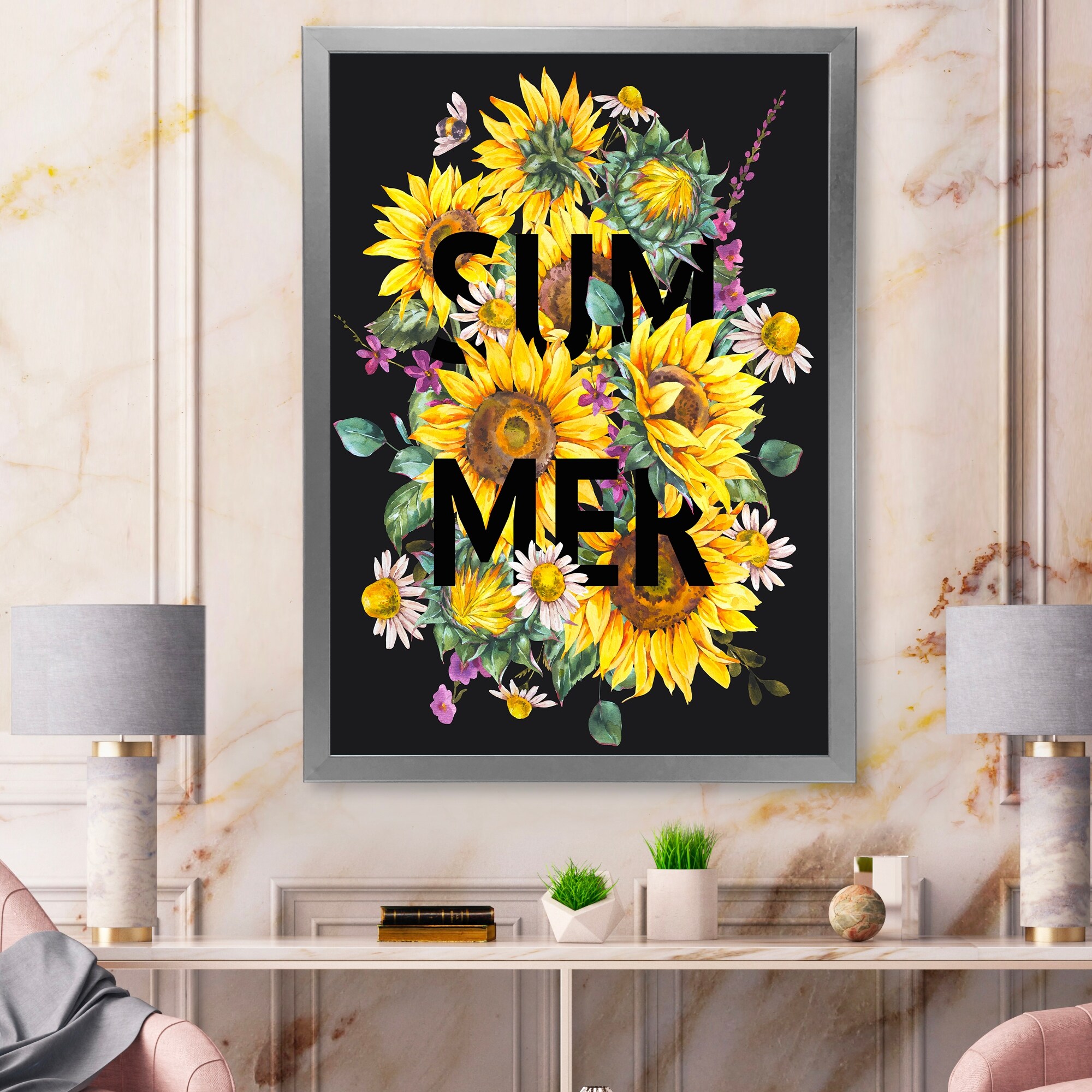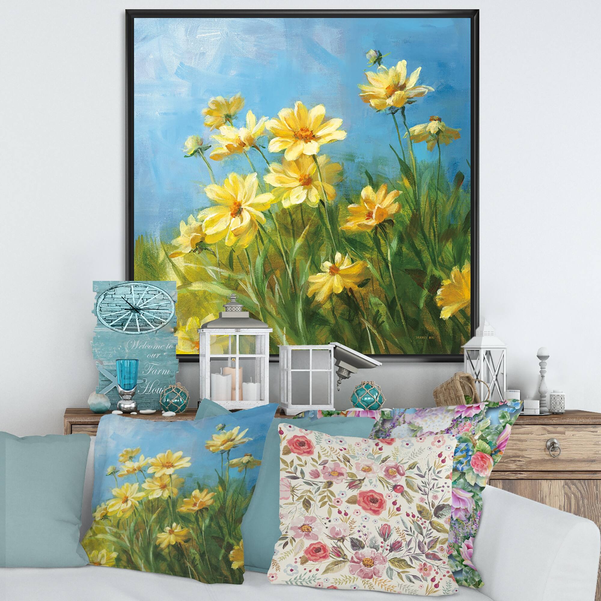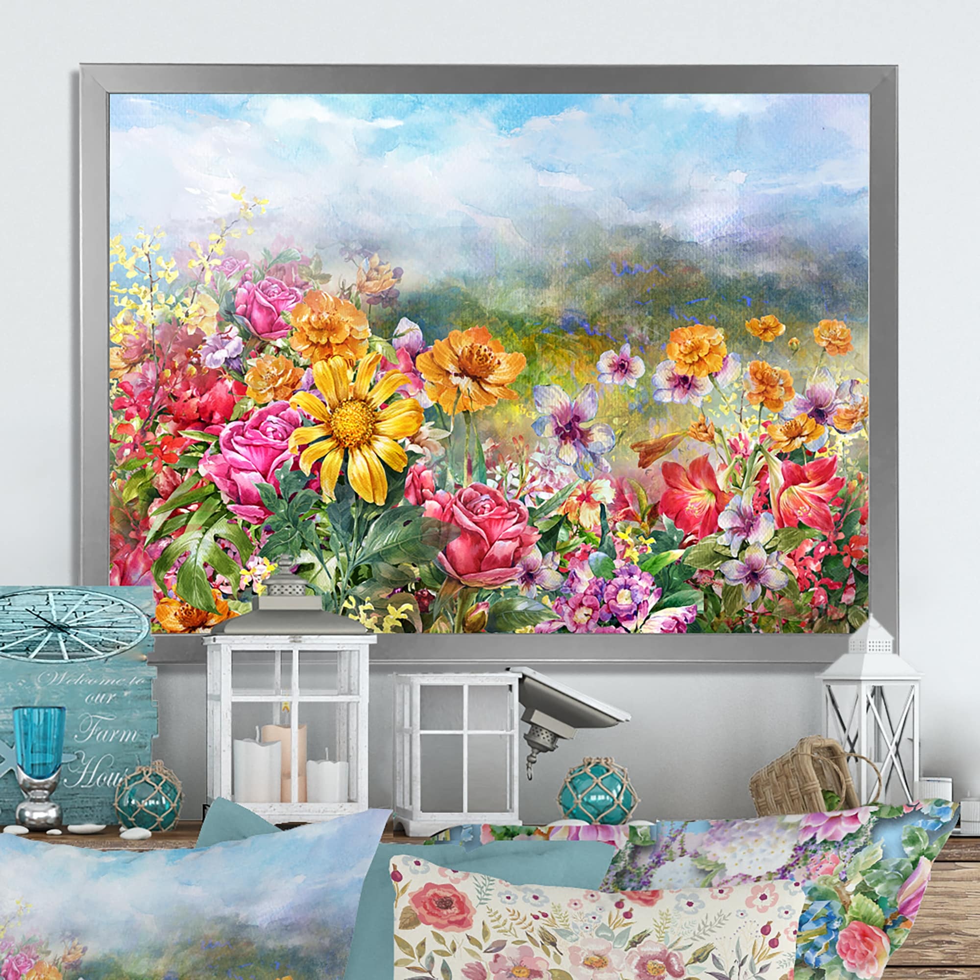 Designart "Summer Flower Field Art" Traditional Framed artwork