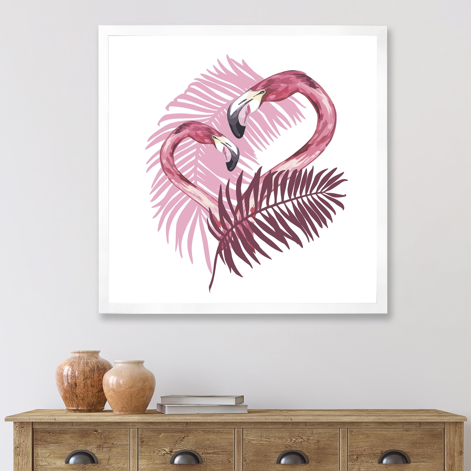 Designart "Flamingo In Tropical Summer I" Traditional Framed Art Print