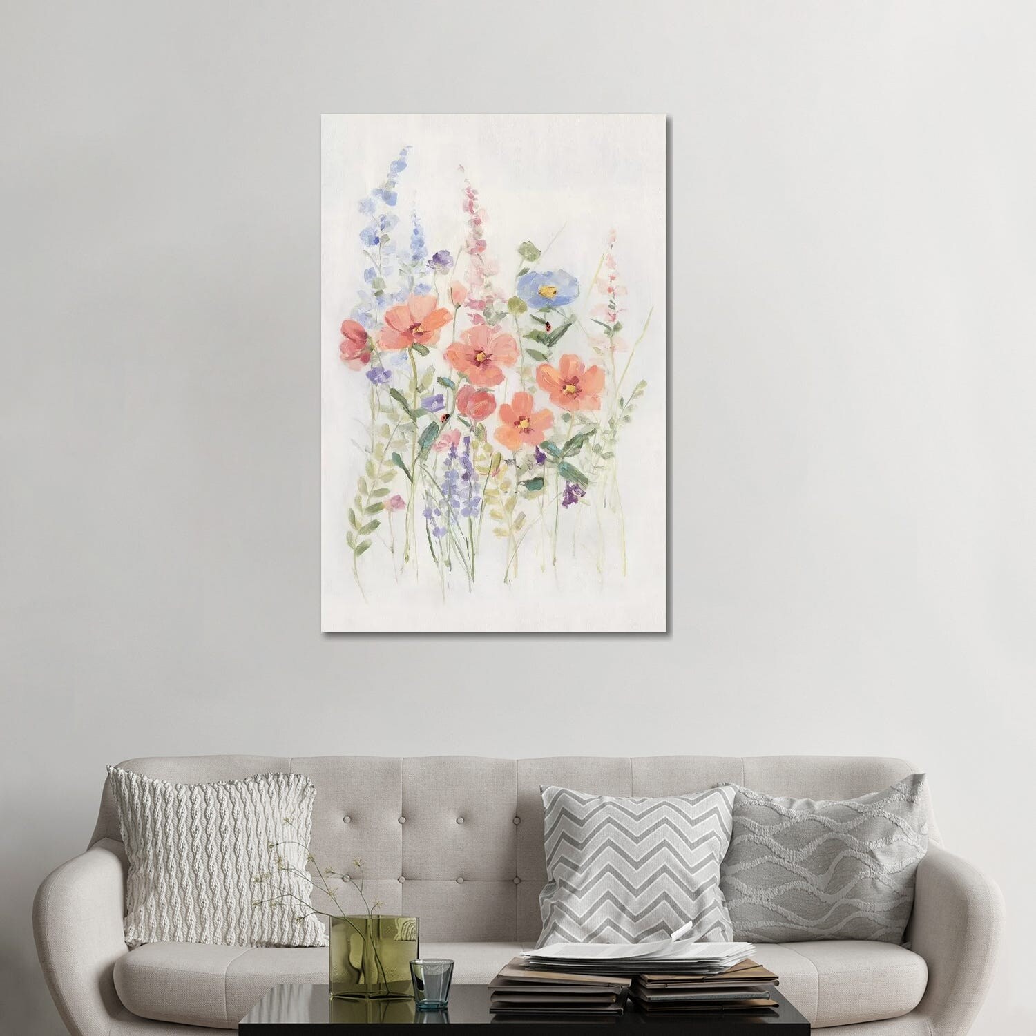 iCanvas "Wild Summer Rustic Flowers Neutral Cold" by Ninola Design Framed