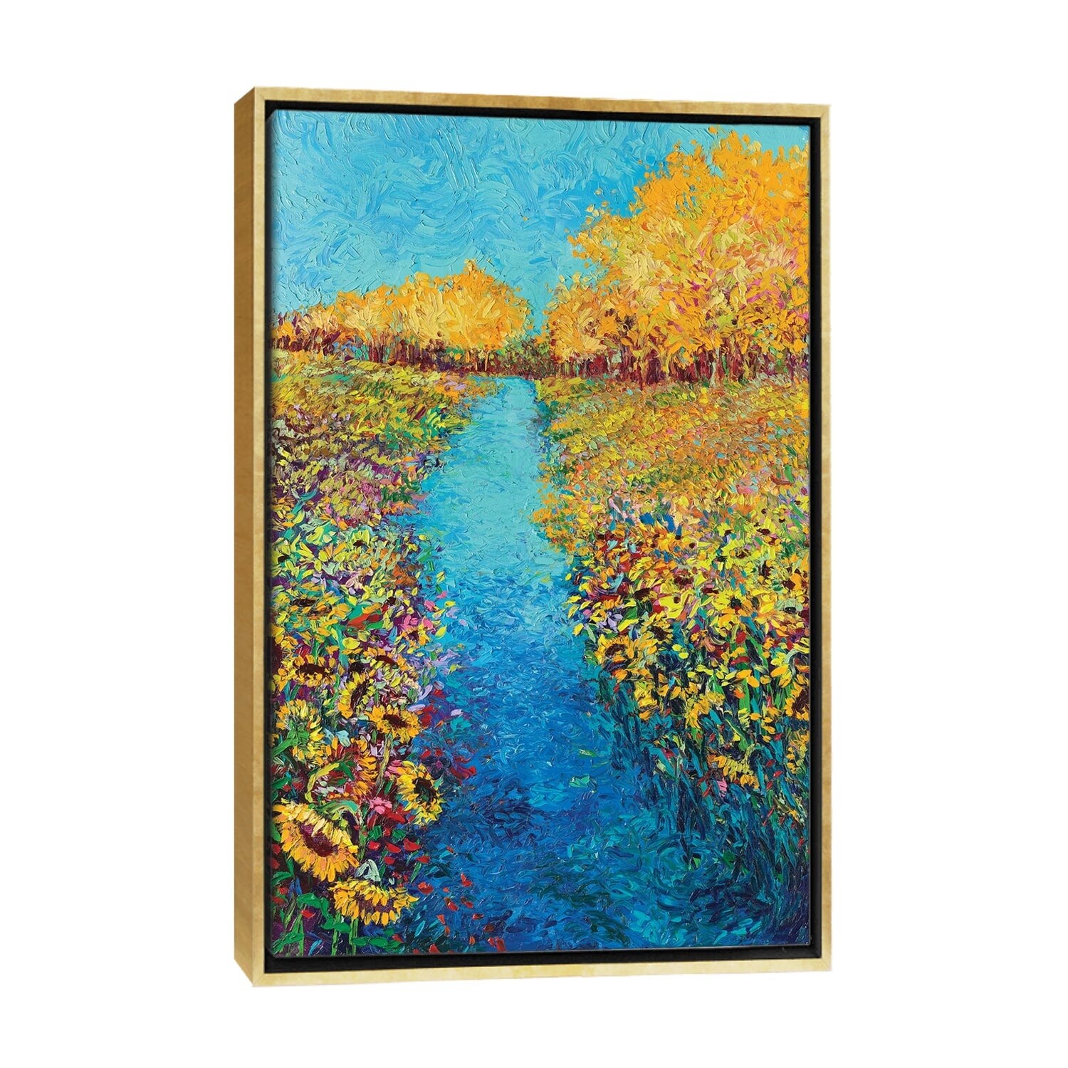 iCanvas "Sunflowers And Sky" by 83 Oranges Framed|Gold - 37x