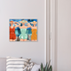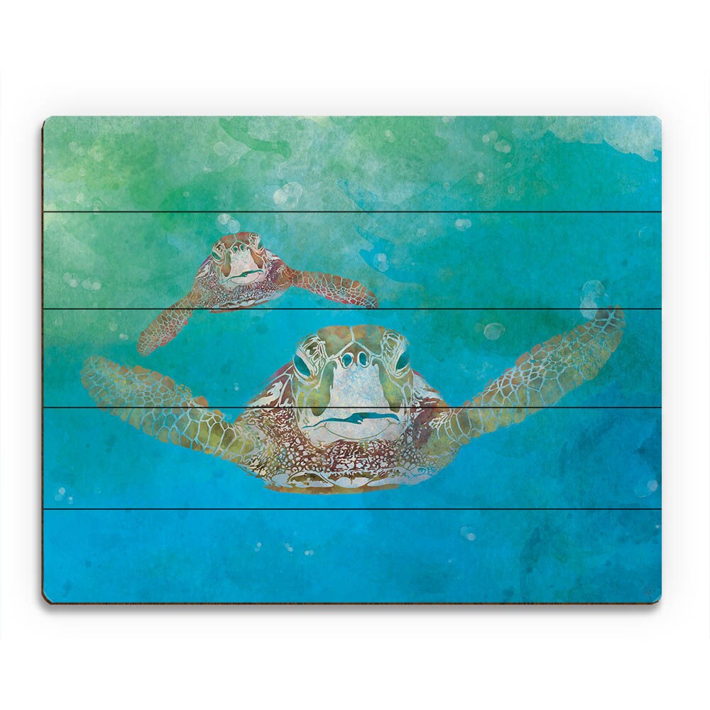 Two Sea Turtles Swimming Wall Art Print on Wood
