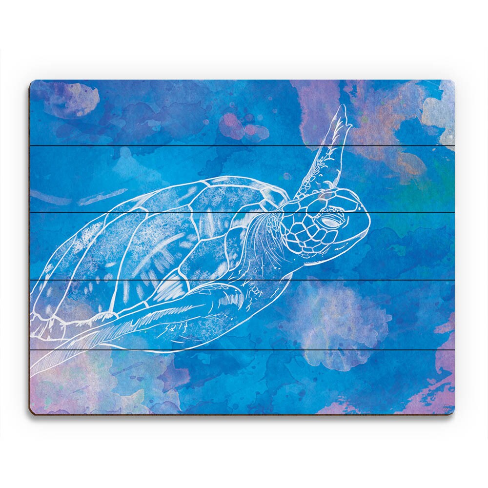 Sea Turtle Swimming on Blue Wall Art Print on Wood