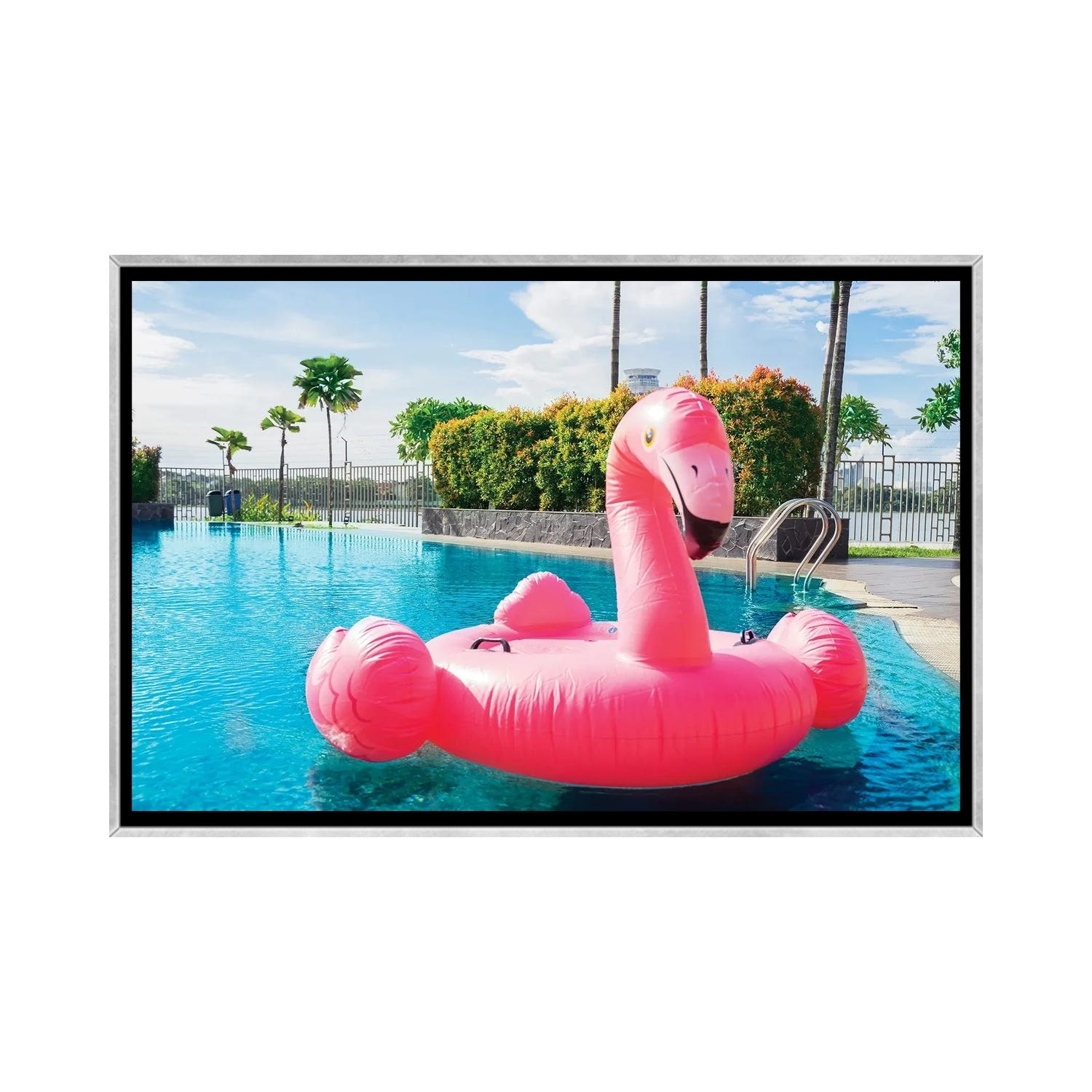 iCanvas "Portrait Of Pink Flamingo Float on Swimming Pool" by realinemedia Framed