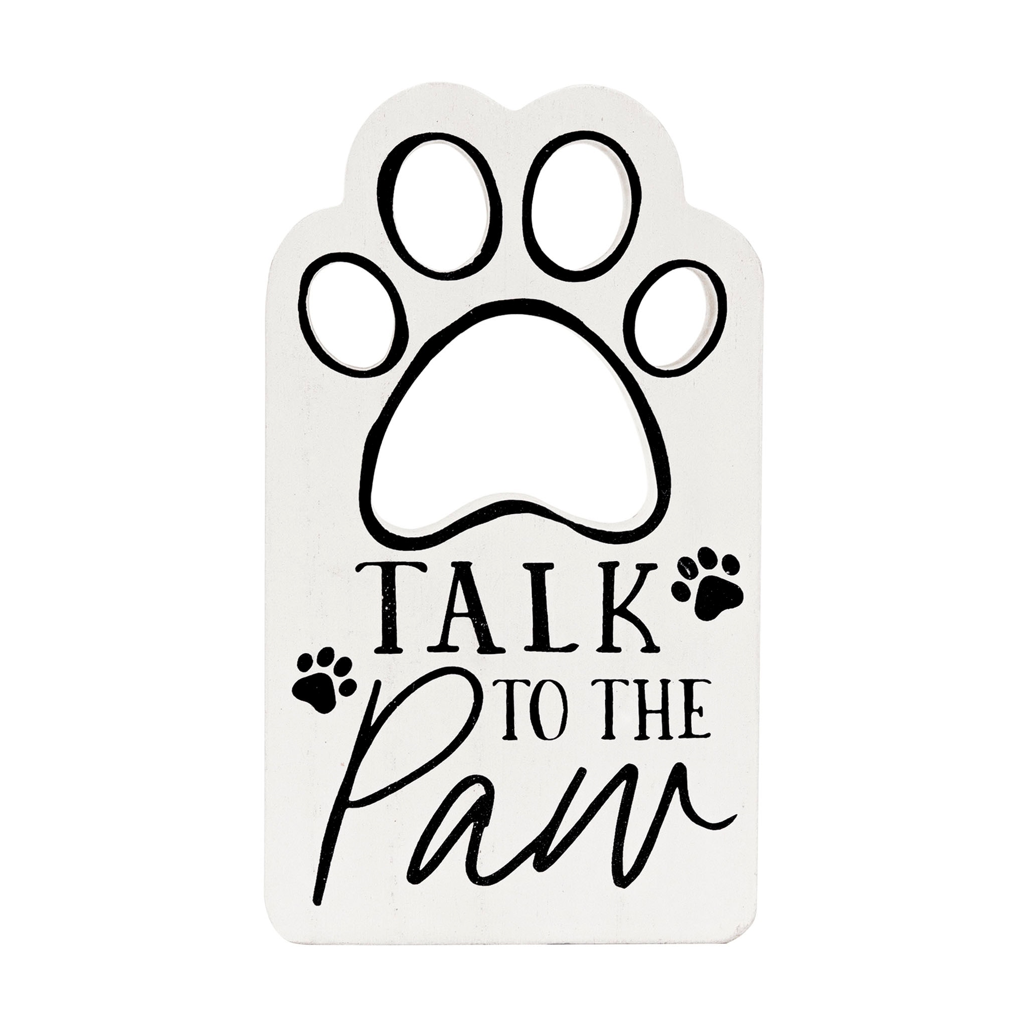 Talk to the Paw Decorative Wood Pet Sign,White, 3.5 x 6 inch