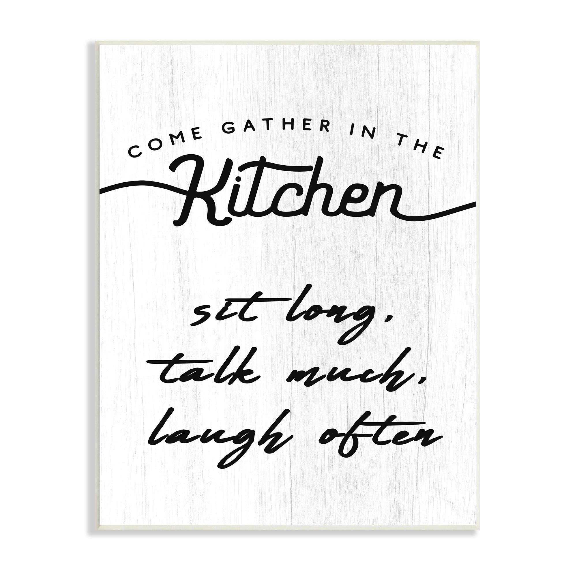 Stupell Industries Kitchen Gathering Sign Minimal Sit Talk Laugh Phrase Wood Wall Art - Off-White