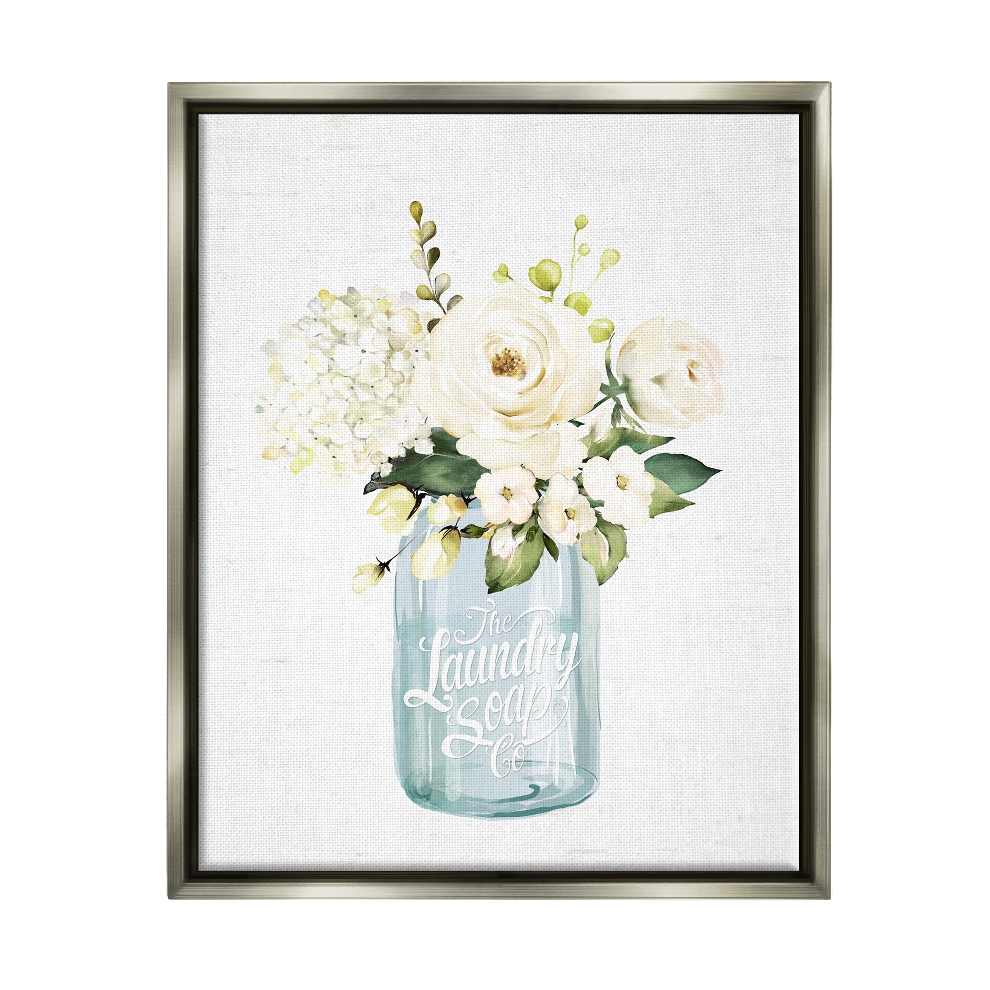 Stupell White Floral Bouquet Vintage Laundry Text Jar Floater Frame, Design by Lettered and Lined