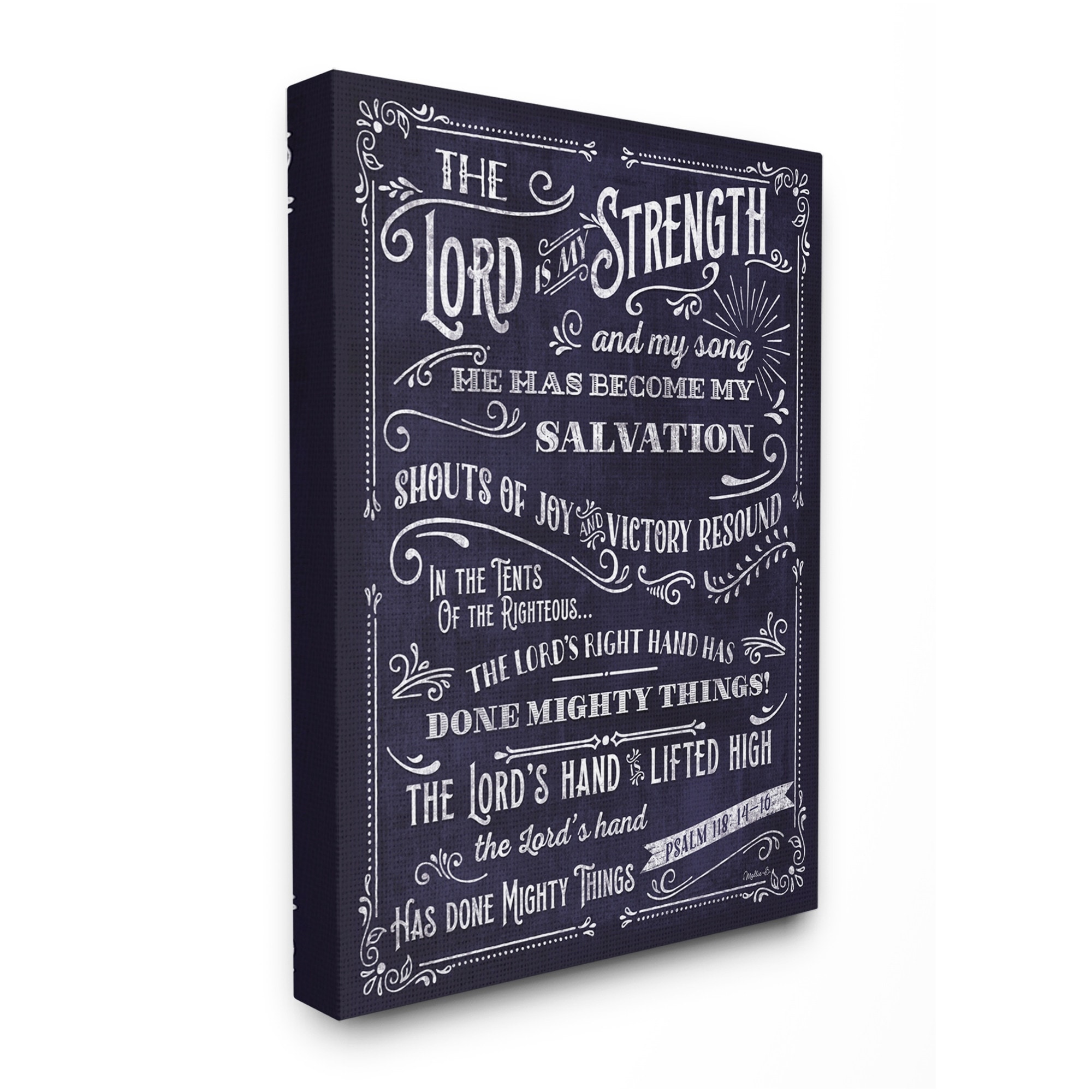 Stupell Lord is My Strength Faith Based Psalm Text Blue White Canvas Wall Art