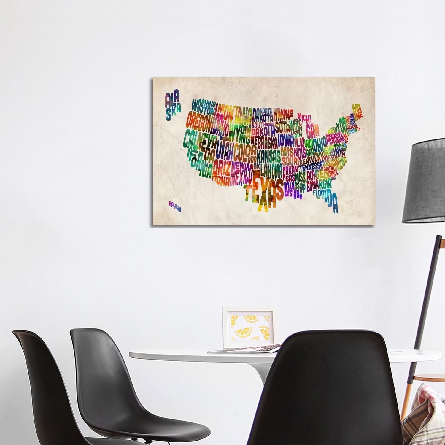iCanvas "Typographic Text USA (States) Map" by Michael Tompsett Canvas Print