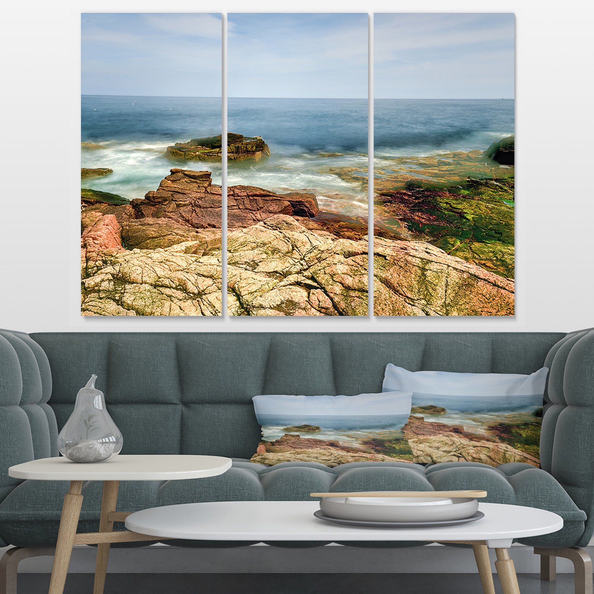 Designart "Thunder Hole Acadia National Park" Oversized Beach Canvas Artwork - 36x28 - 3 Panels
