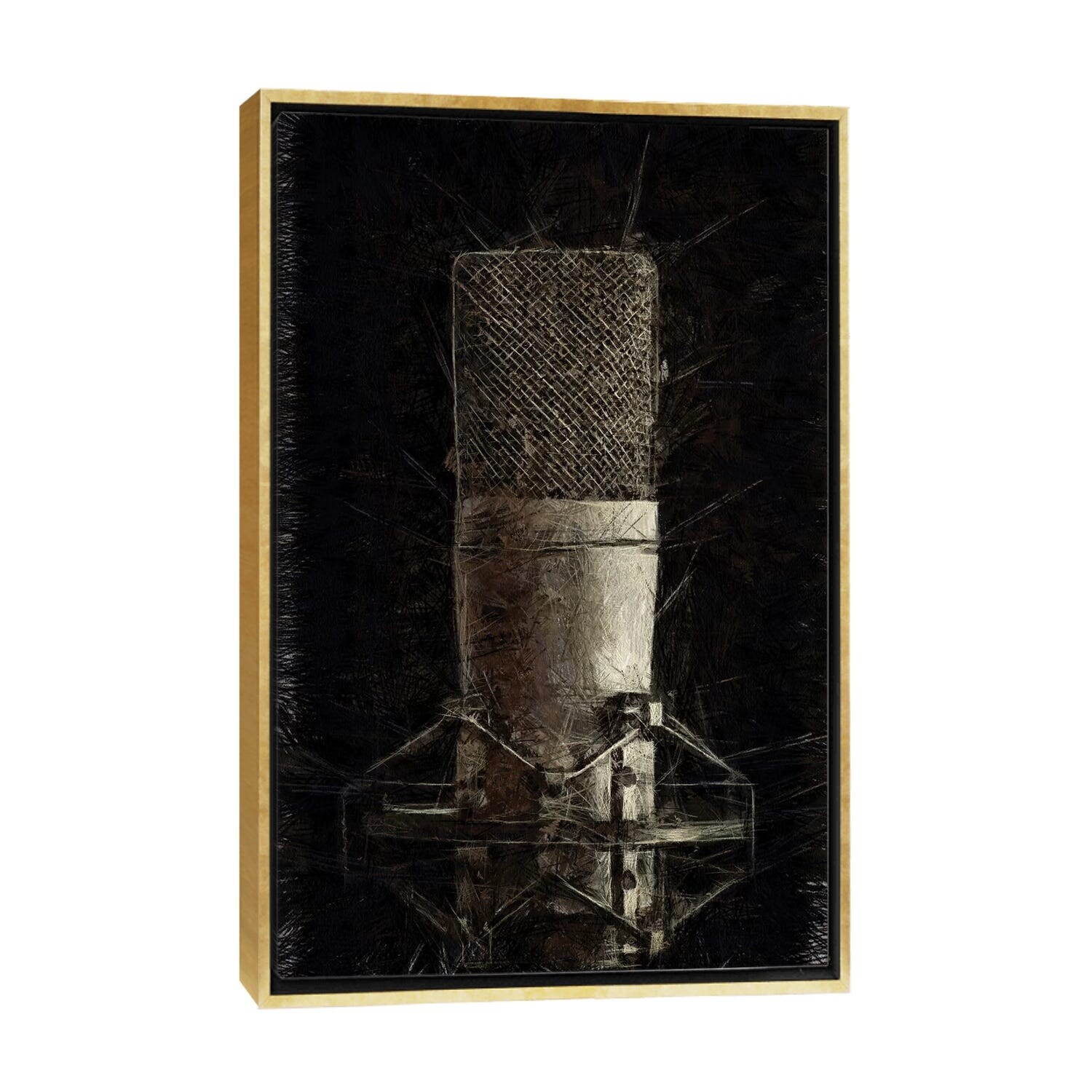 iCanvas "Black and White Microphone Illustration" by Tom Quartermaine Framed Canvas Print