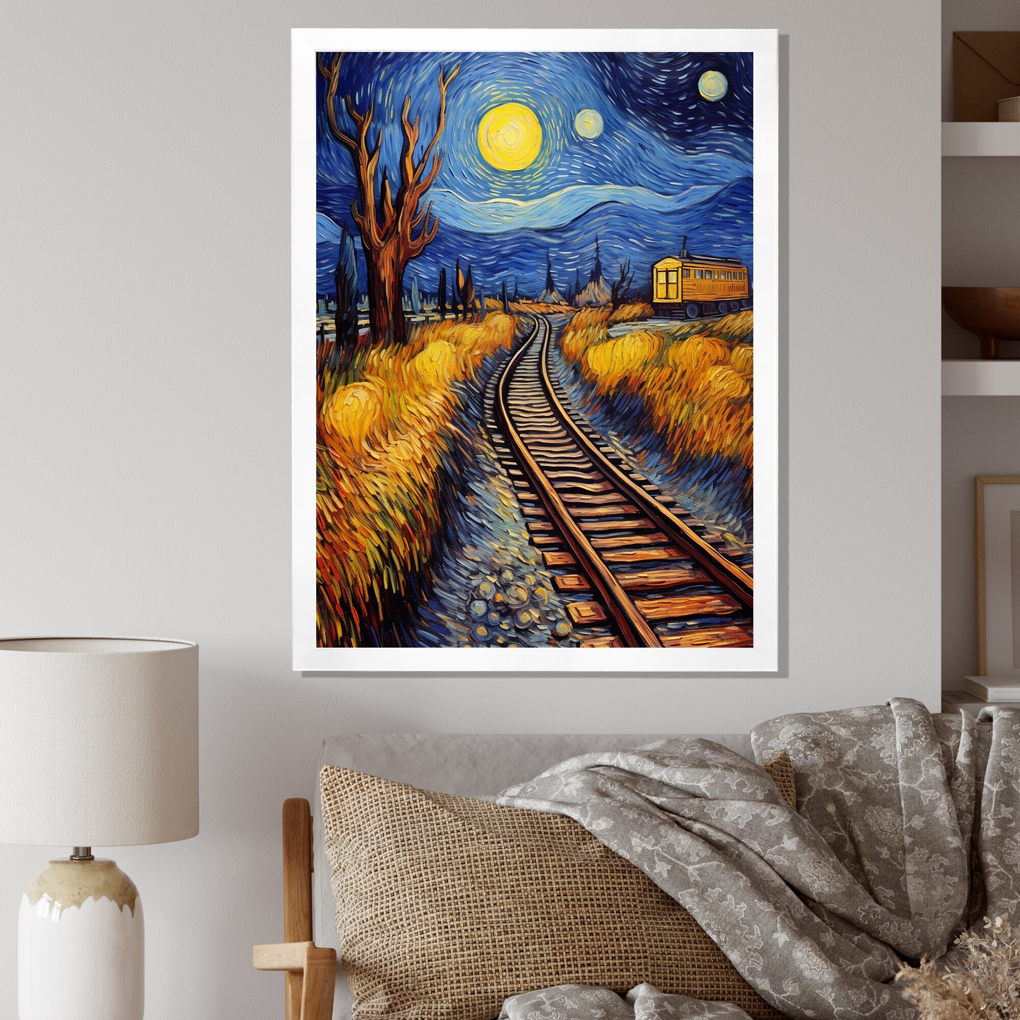 Designart "Train Bold Rhythms" Train Framed Wall Art Living Room