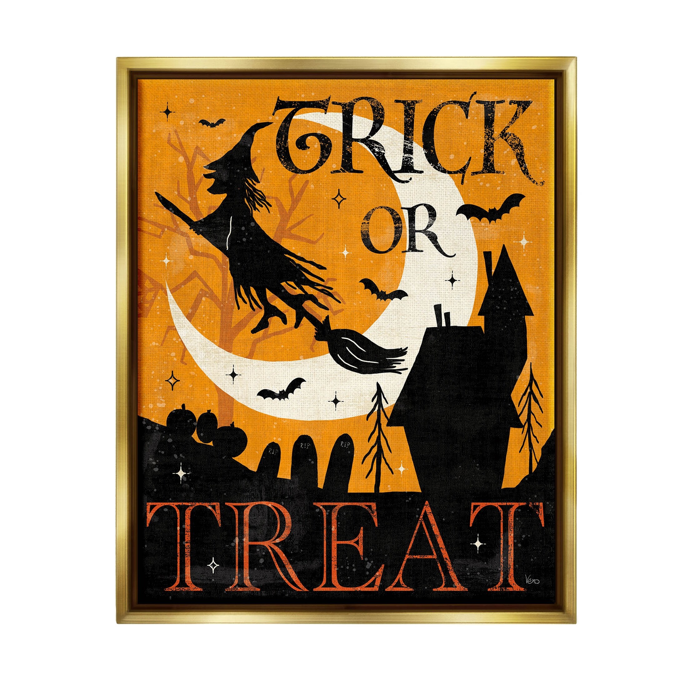 Stupell Trick Or Treat Halloween Witch Framed Floater Canvas Wall Art, Design by Veronique Charron